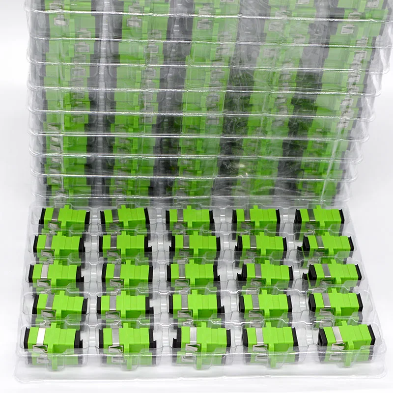 El adaptador de fibra óptica (también llamado brida) es el conector de fibra óptica para conectar las piezas. Incluyendo FC, SC, ST, LC, son ampliamente utilizados en equipos de comunicación de fibra óptica de marco de distribución óptica, instrumentación, rendimiento estable y confiable.