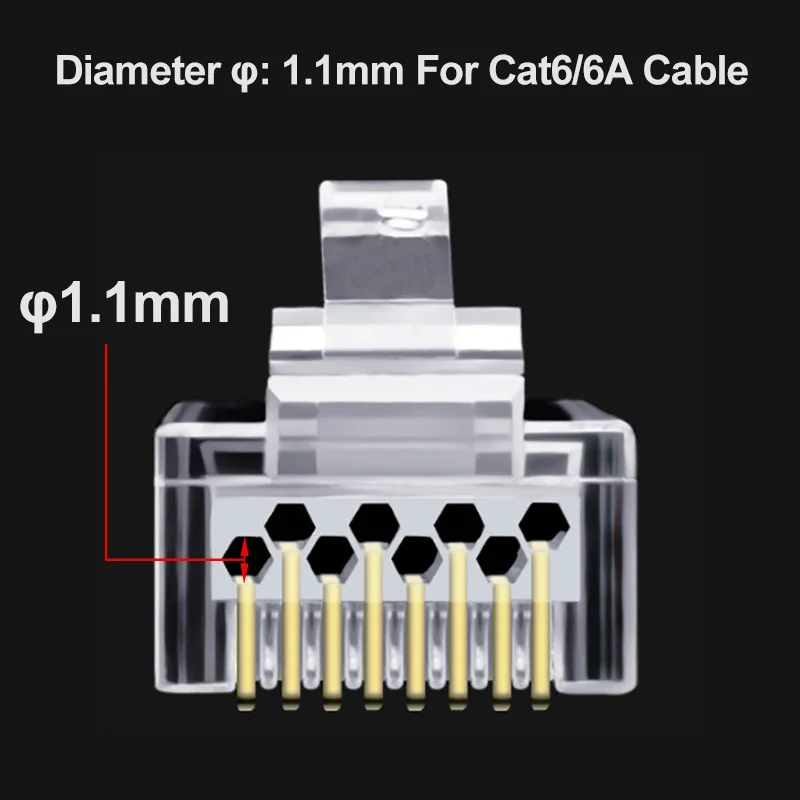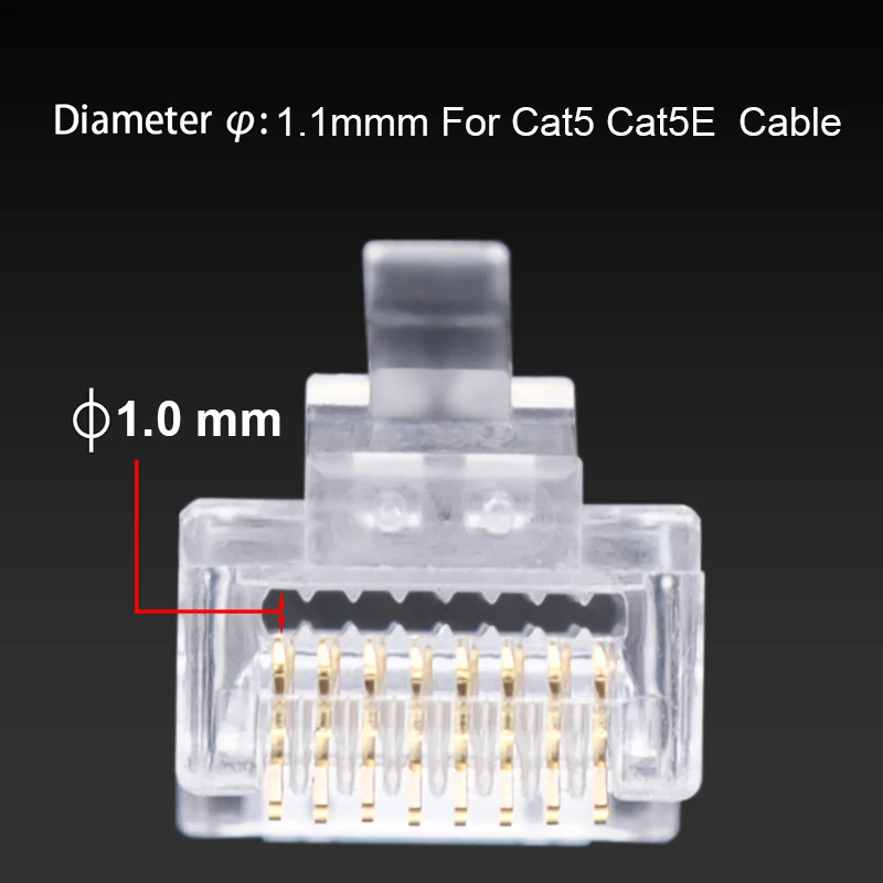 Conectores RJ45 de paso de enchufe modular.Enchufes de cable de red de 8 pines.Cables chapados en oro para una mejor transmisión de datos y una mayor intensidad de señal.