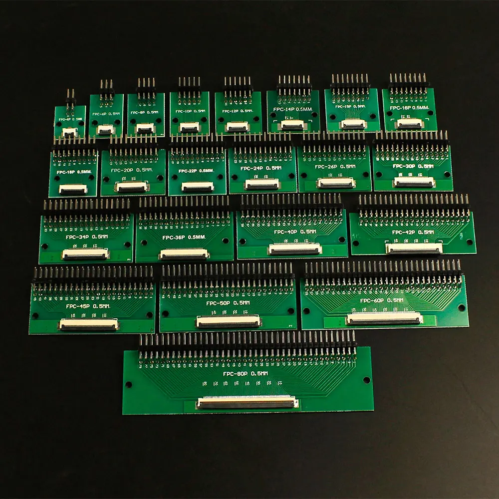 1 Paso de 0,5mm 6P/8P/10P/12P/20P/24P/26P/30P/40P/50P/60P/80P adaptador de conector SMT a cable FPC FFC de 2,54mm con orificio de 1,00 pulgadas Tablero soldado + pin recto de doble fila