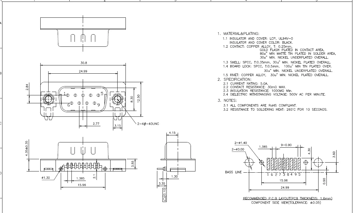 Comprar Conector de PCB DB9 macho, montaje de PCB, d-sub, 9 pines, SMD, RS232, SMT, 90 grados, DR9, 1 piezas