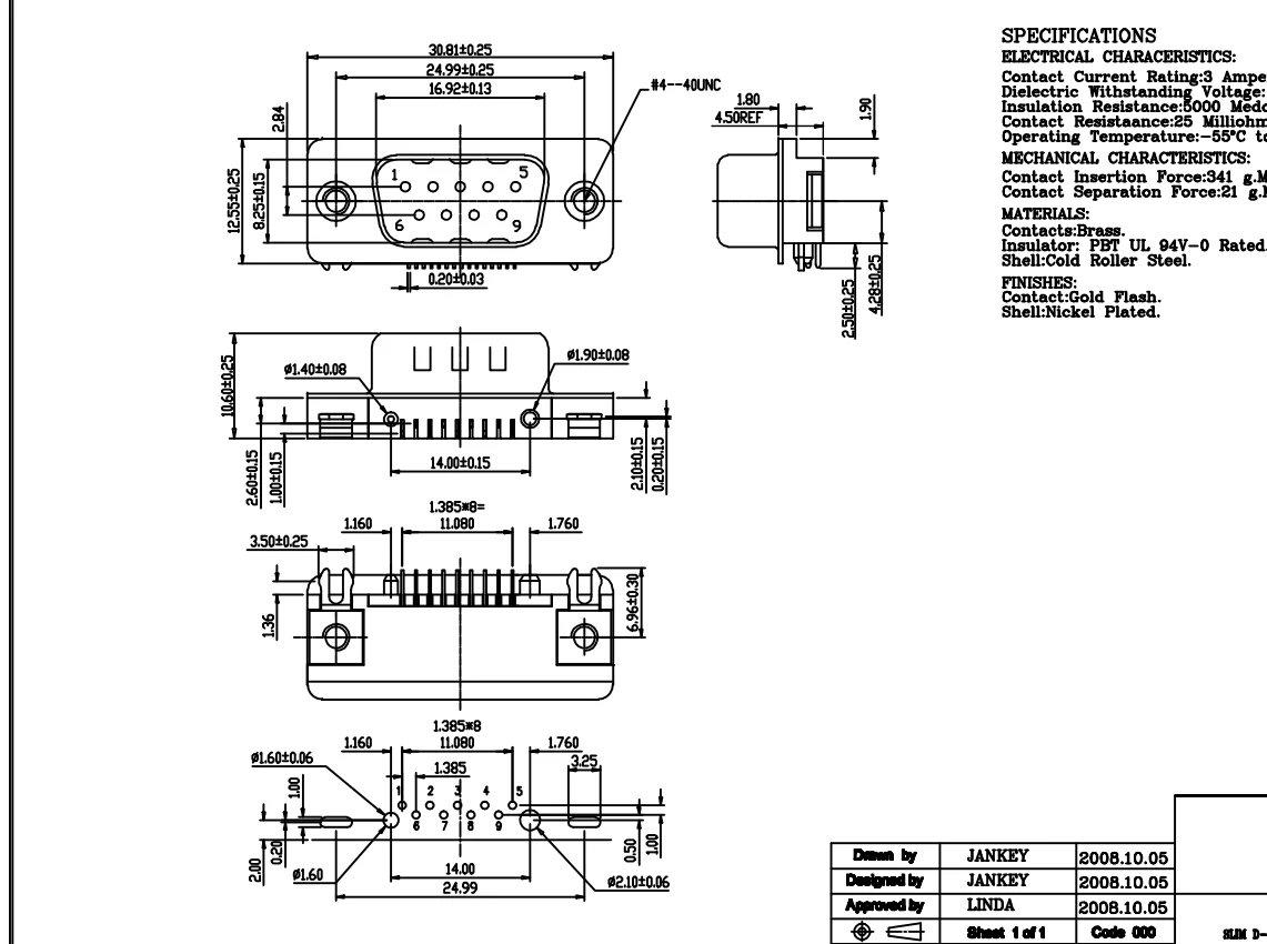 Comprar Conector de PCB DB9 macho y hembra, conector RS232 de 9 pines, aguja doblada de 90 grados, DR9, nuevo, 5 piezas