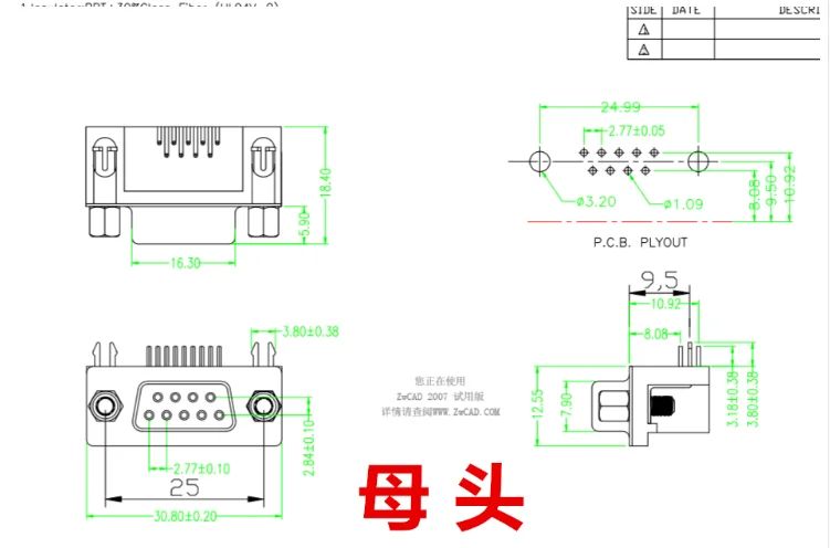 Comprar Conector PCB DB9 macho y hembra, conector RS232 de 9 pines, aguja doblada de 90 grados, DR9, 2 piezas