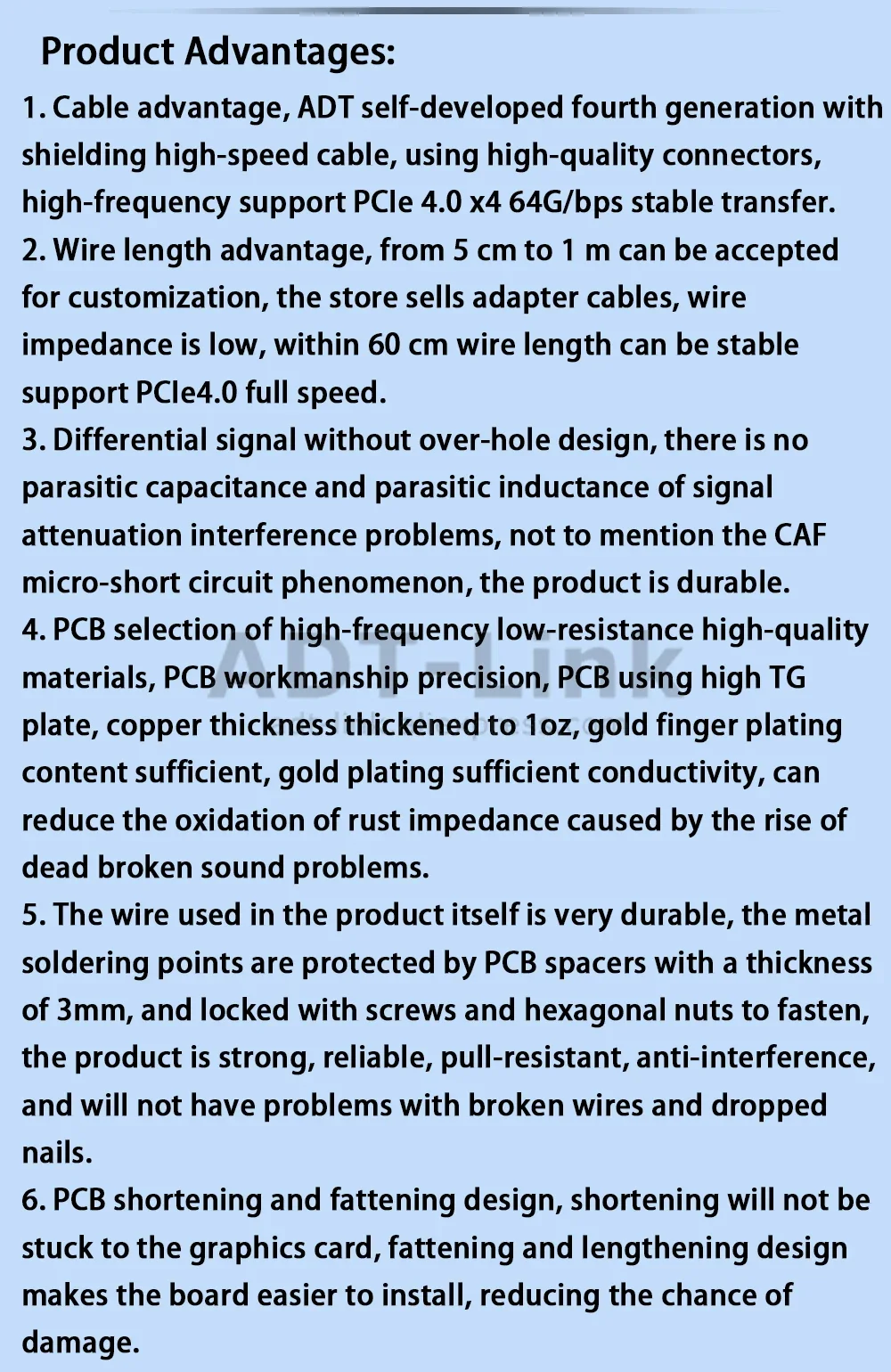 Usage restrictions: PCIe 4.0 has high requirements on the equipment. As long as the extension cable is connected, the signal will be attenuated. This product does not guarantee the full speed of PCI-E 4.0. The equipment is aging. If the signal is poor or the environment is not good, please slow down to PCIe 3.0 or lower.