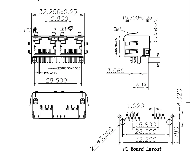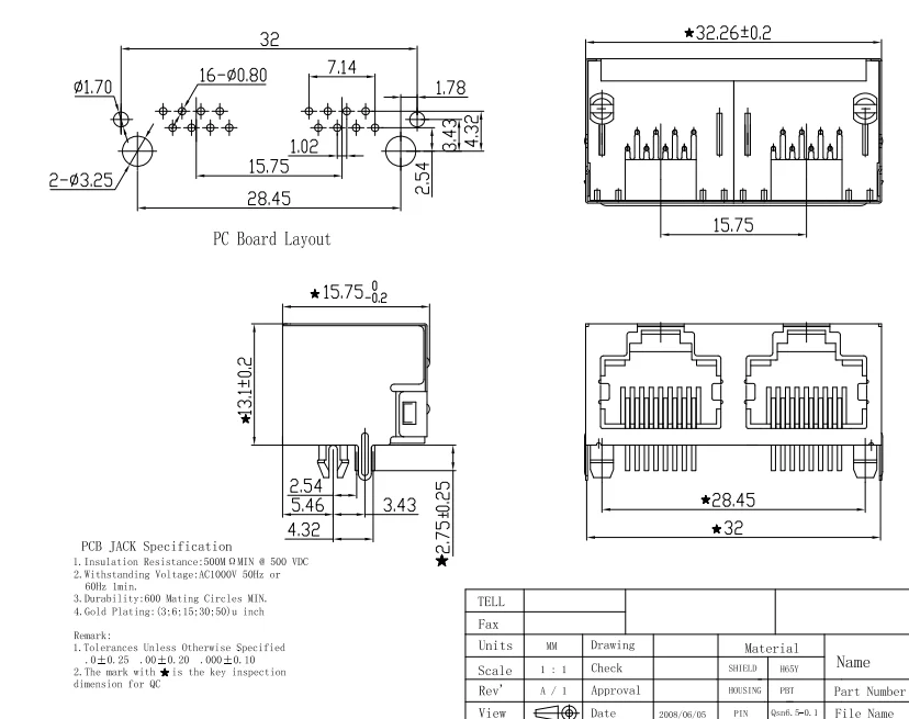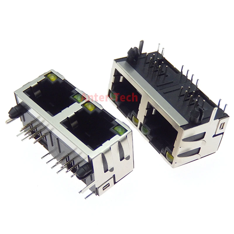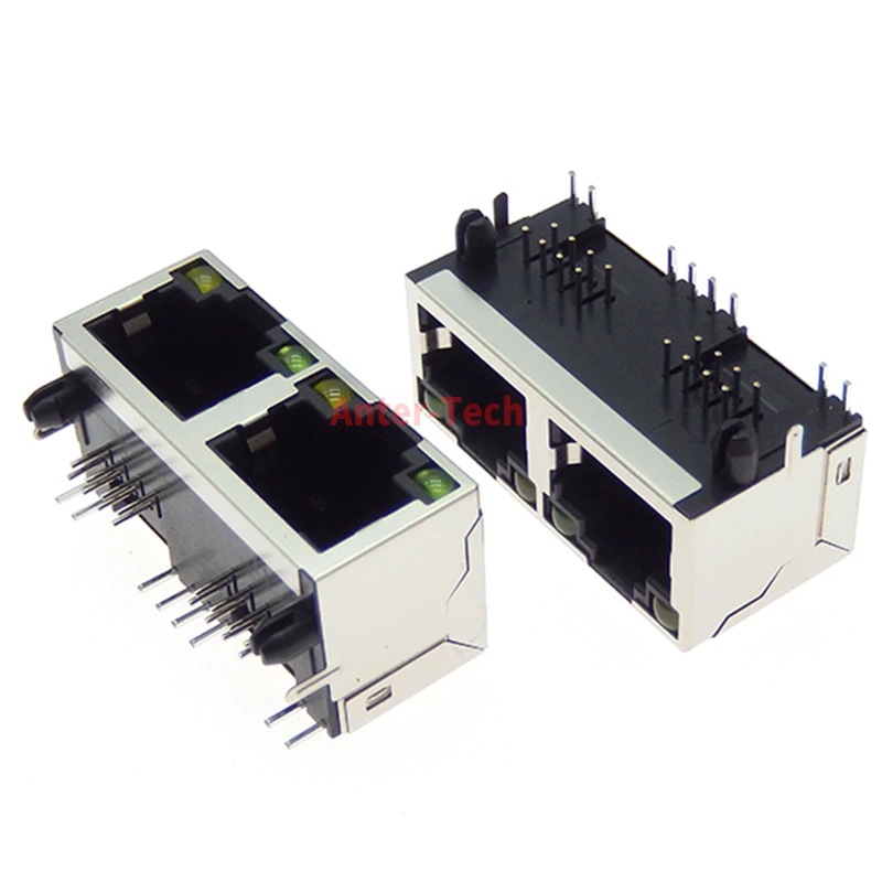 Comprar Conector de placa PCB hembra de metal RJ45, Conector de cabecera de cristal 8P8C, 1x2, 16 Pines, 1x2, con/sin interfaz de red ligera, 1 piezas