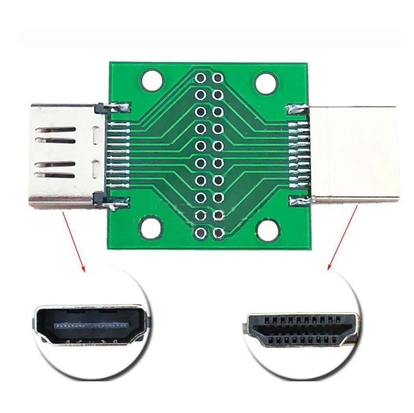 1 piezas conector de placa de prueba compatible con HDMI macho a hembra, con placa PCB 2,54mm paso 19 / 20pin DP HD placa adaptadora de placa de circuito