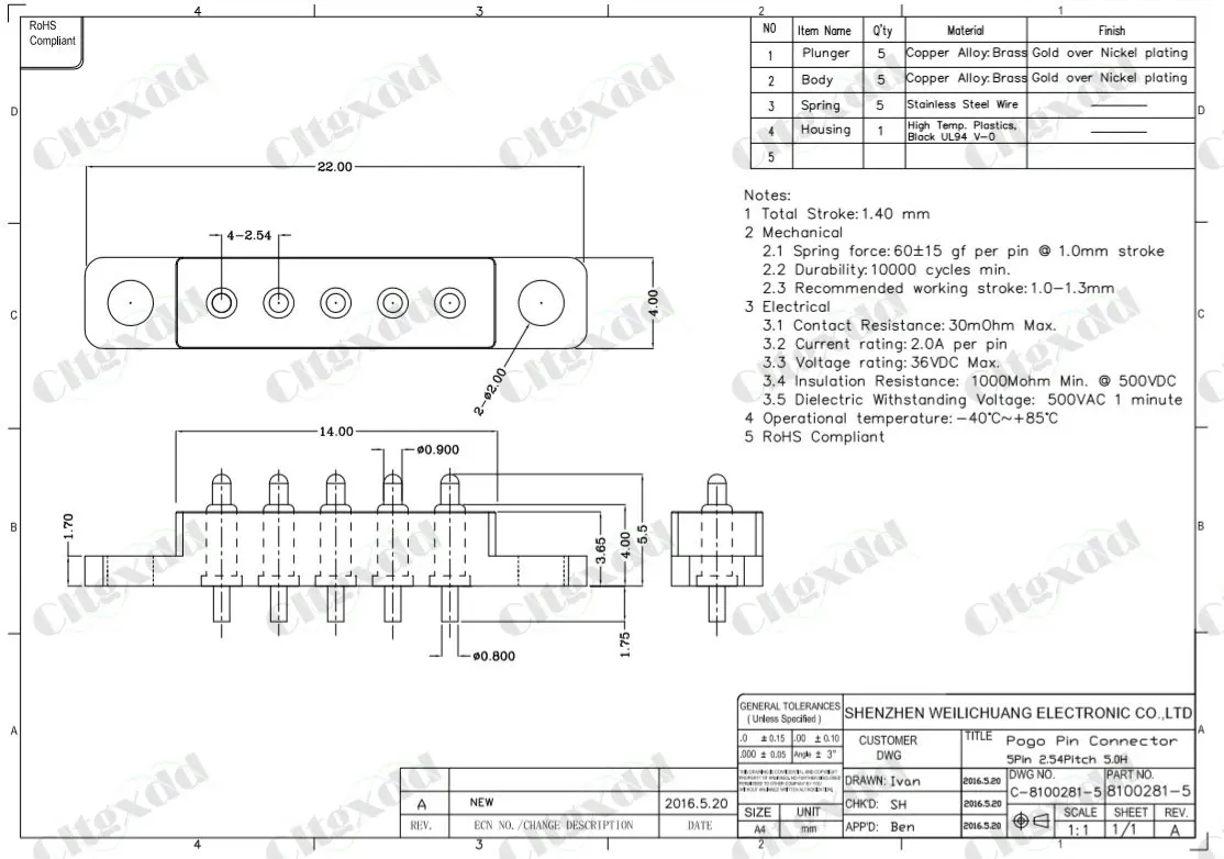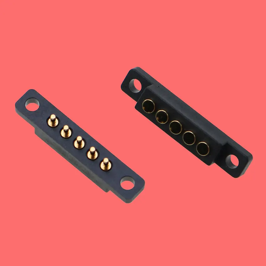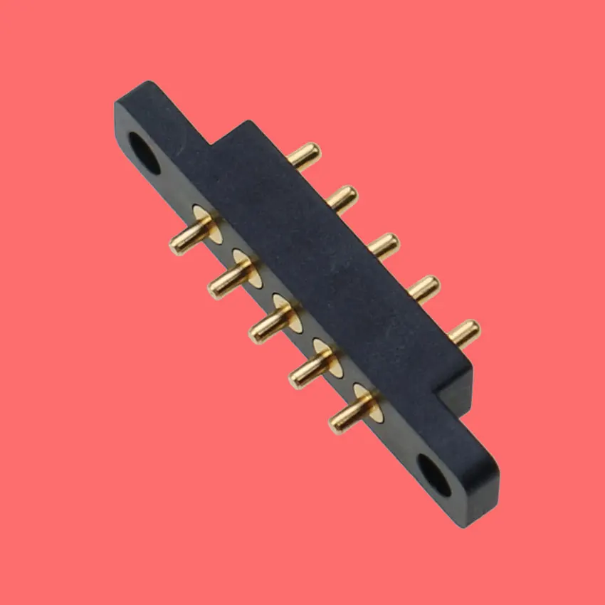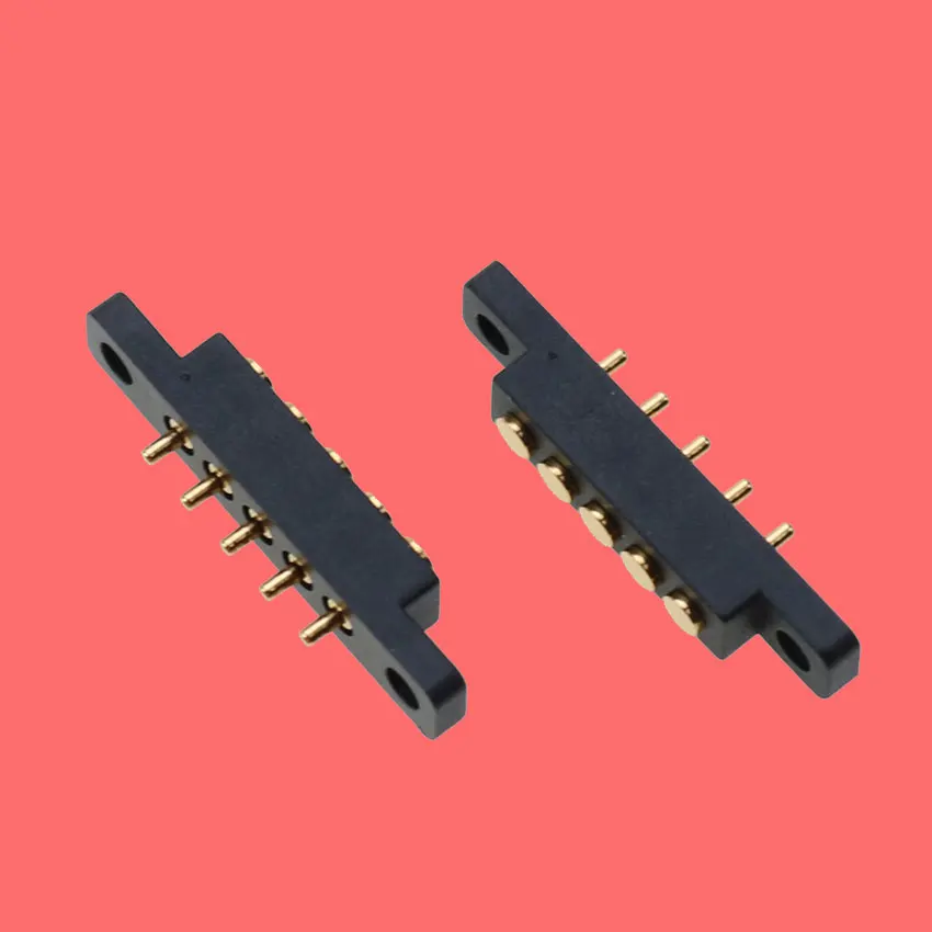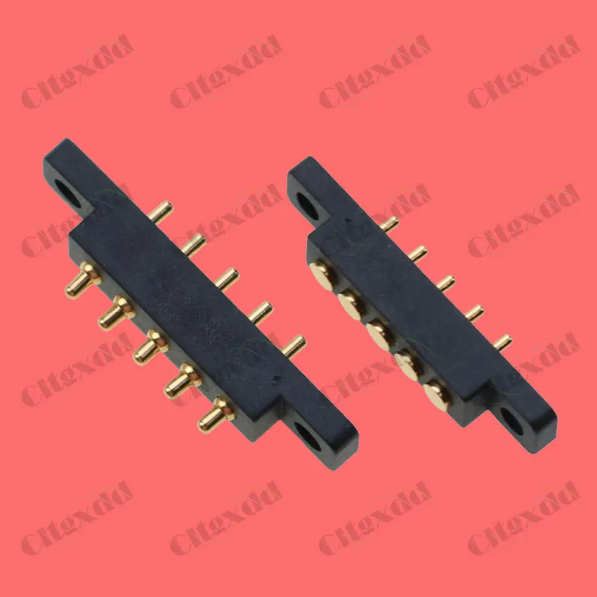 Comprar Conector Pogo macho hembra con resorte cargado, 5 pines, 2,54 MM, agujeros de paso con brida, tira de una sola fila, 1 ud.