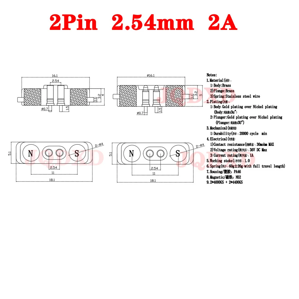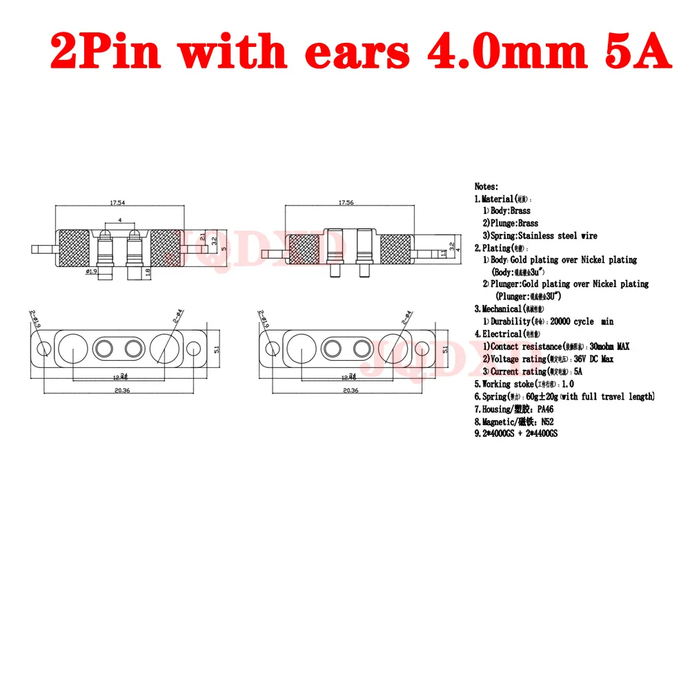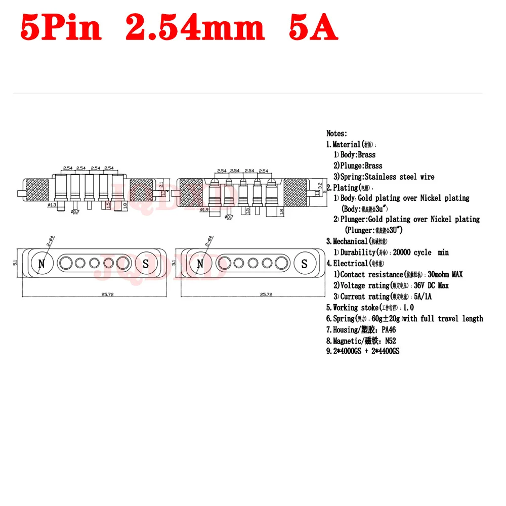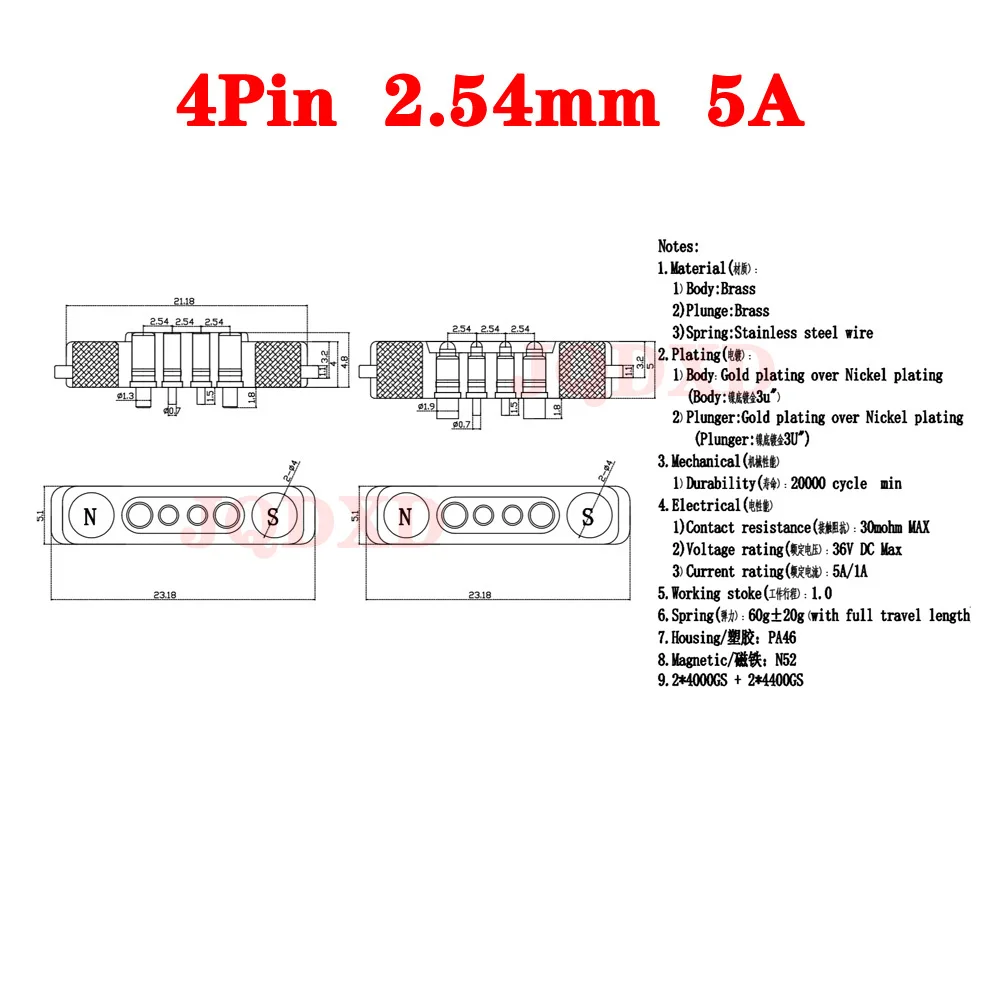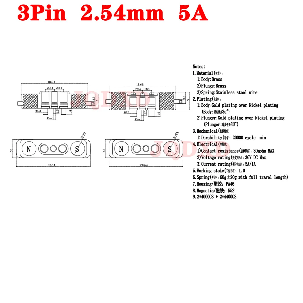 Conector Pogo Pin magnético de 5A CC, 2 pines, 3 pines, Pogopin, macho, hembra, toma de corriente CC con resorte, 2P-10P