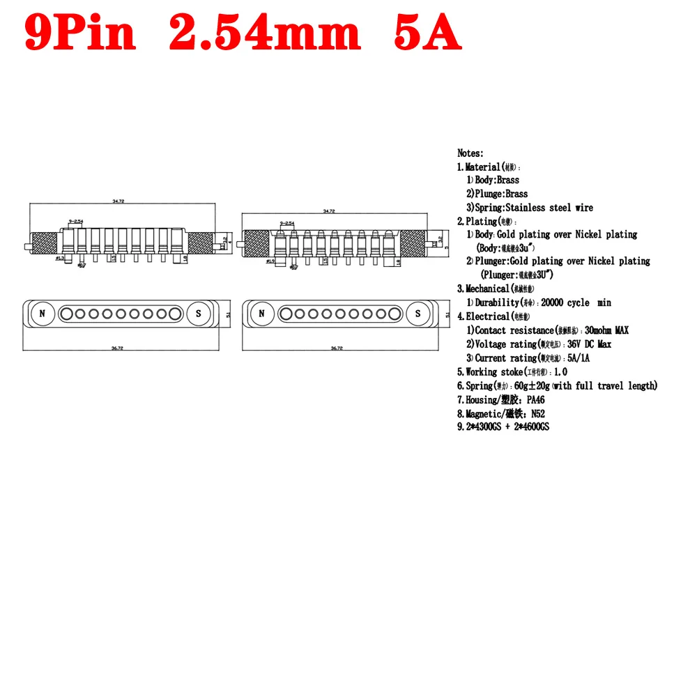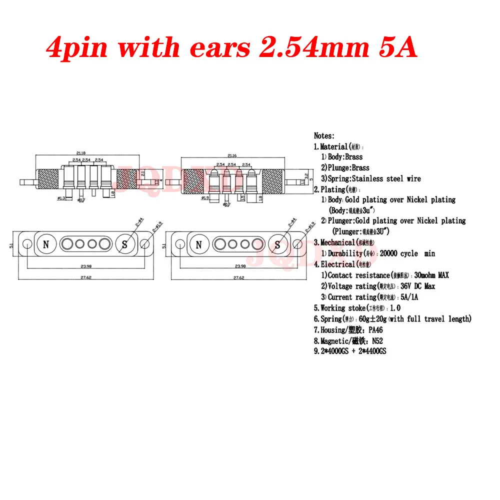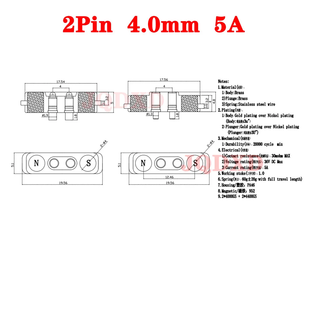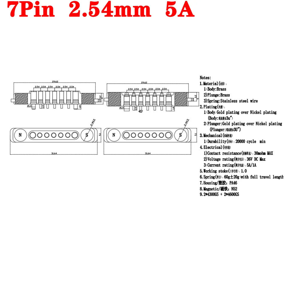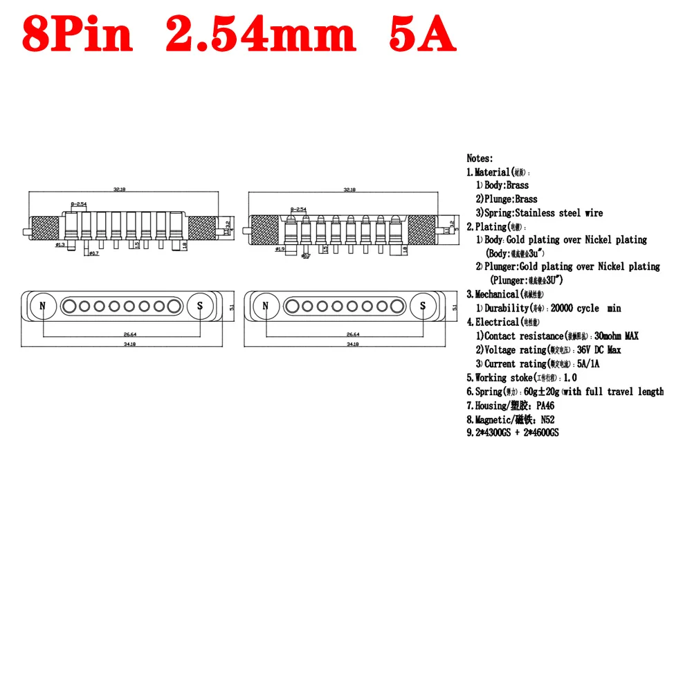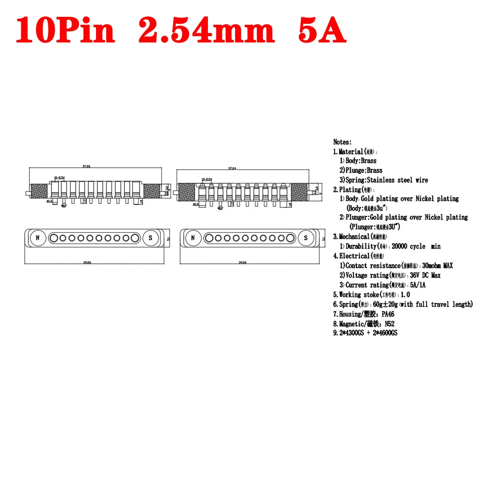 Conector Pogo Pin magnético de 5A CC, 2 pines, 3 pines, Pogopin, macho, hembra, toma de corriente CC con resorte, 2P-10P