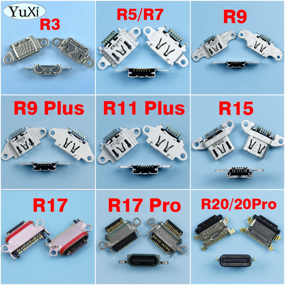 2 piezasConector de carga USB enchufe de puerto para OPPO R3 R5 R7 R11S Plus R9 Plus R15 R17 Pro R20 Pro enchufe de base de carga Micro USB