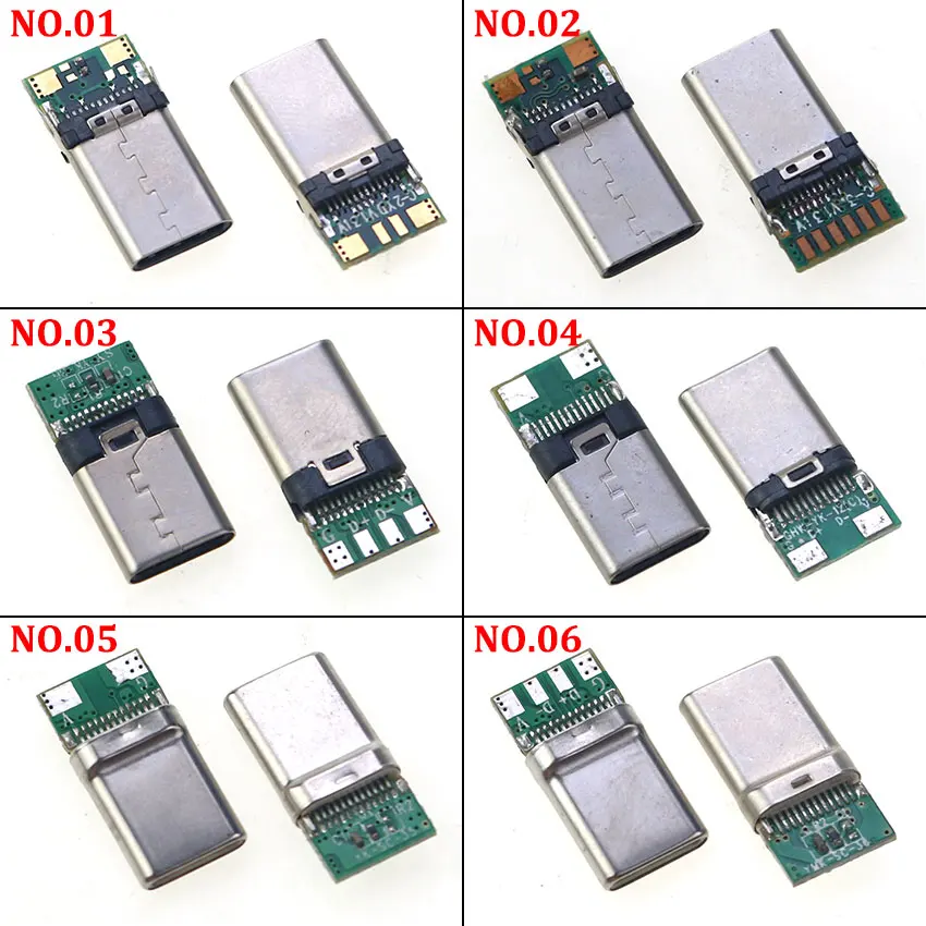 Conector de puerto de carga USB 3,1 tipo C, conector macho 2,0 3,0 con carcasa de Metal, cubierta superior e inferior, cable de datos, soldadura con placa PCB