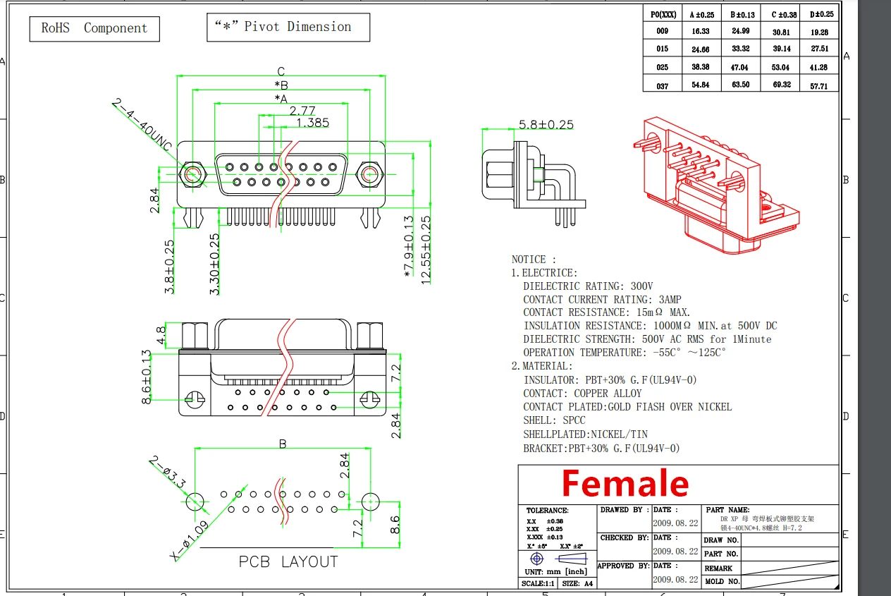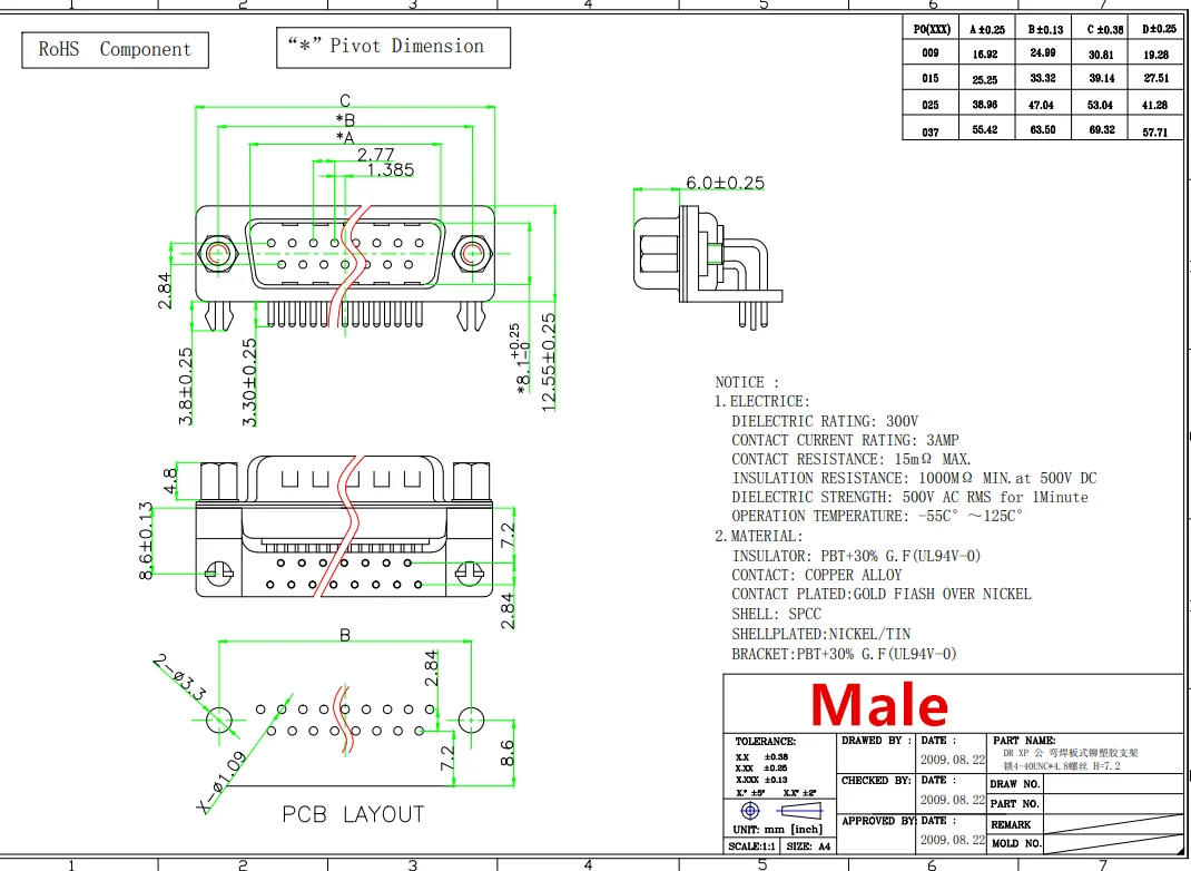 Conector de puerto serie de montaje en PCB, Conector de ángulo recto d-sub COM, adaptador de 25 pines, 1 piezas 3U chapado en oro sólido DR25 macho hembra