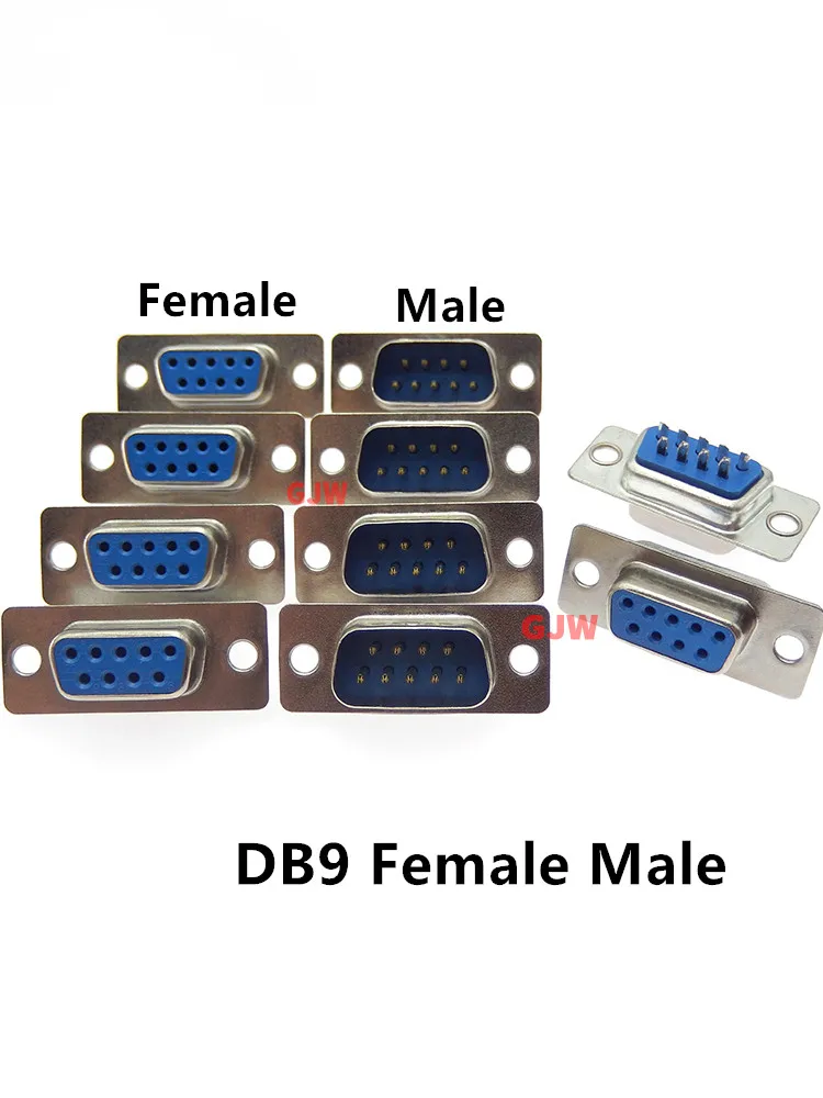 Comprar Conector de puerto serie de montaje PCB DB9 macho hembra, conector de soldadura tipo d-sub RS232 COM, adaptador de 9 pines para PCB, 10 Uds.