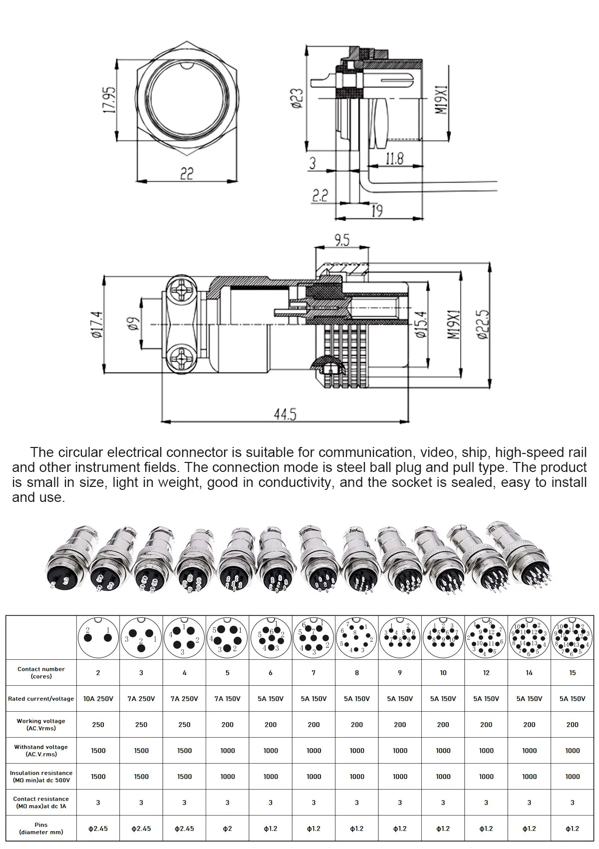 gx20 Adecuado para instrumentos y medidores, conexión eléctrica entre dispositivos electrónicos, aplicado a equipos marinos y de aviación. Computadora. Comunicación. Exploración petrolera. Navegación. Equipo antirrobo. Electrónica de tráfico y mecánica.