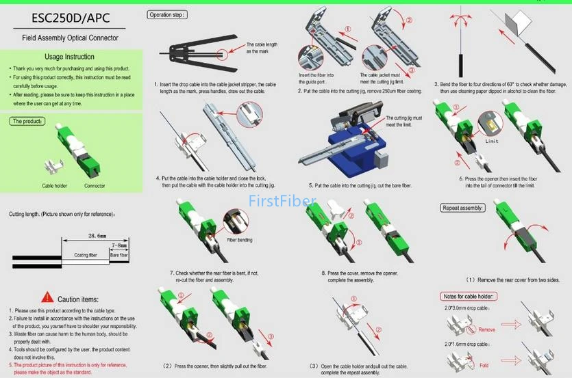 Conector rápido SC/APC ESC25D-APC para Cable de caída de 2x3mm y Cable de caída de 1,6x2mm conector de montaje de campo de fibra óptica FTTH