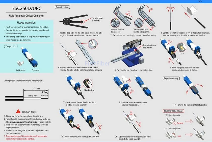 Comprar Conector rápido ESC250D-UPC SC/UPC para Cable de caída de 2x3mm y Cable de caída de 1,6x2mm, Conector de montaje de campo de fibra óptica FTTH