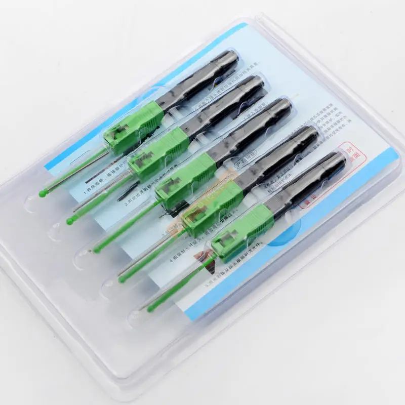 Este Tipo de empalme de fusión en el conector SC rápido es en realidad una fusión de fibra óptica. Sin embargo, los puntos de soldadura están en el extremo interior del conector. Lo que hace que no sea necesario para equipos de protección adicionales, como la Placa de protección de fibra (Bandeja de empalme de fibra óptica), la caja de terminación de fibra óptica y el marco de distribución de fibra óptica, después de que termine la fusión del empalme. La férula prepulida elimina la necesidad de pulir, adhesivos y prensar en el campo, lo que minimiza el potencial de error del operador y la costosa chatarra del conector. En comparación con el conector rápido óptico mecánico, este nuevo conector práctico ahorra el mantenimiento del conector mecánico con ranura en V y puede reducir el coste de mantenimiento.