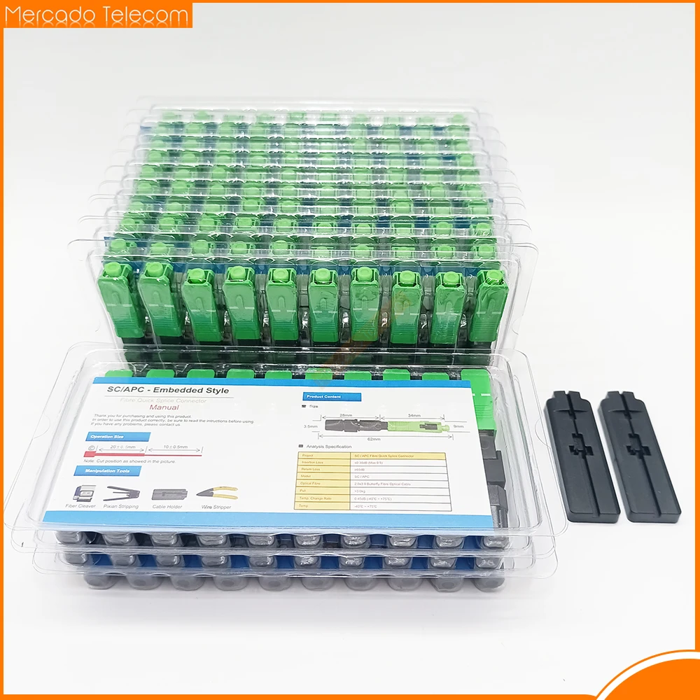 Comprar Conector rápido de fibra óptica SC APC, acoplador rápido integrado FTTH, modo único, brida SM piezas, 50 piezas, 100 SC-APC, 60mm