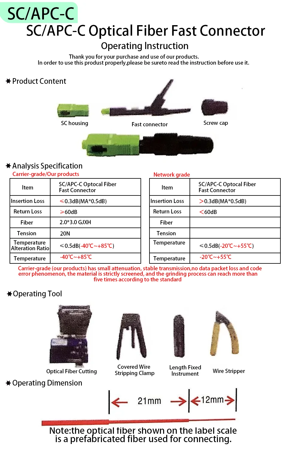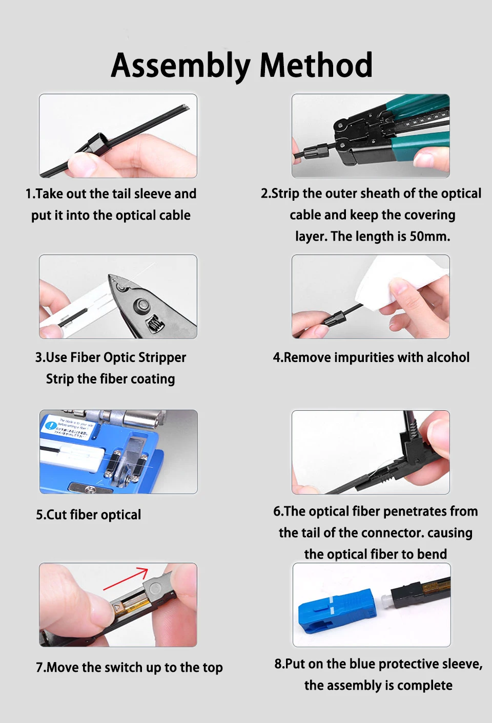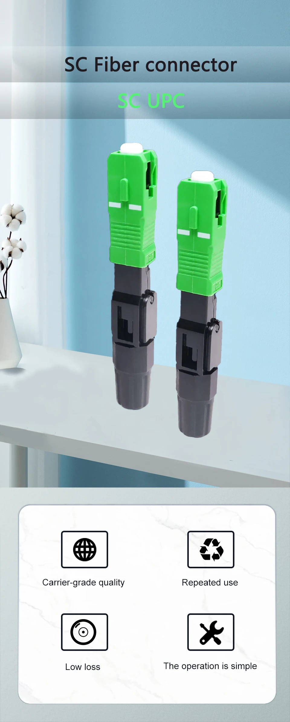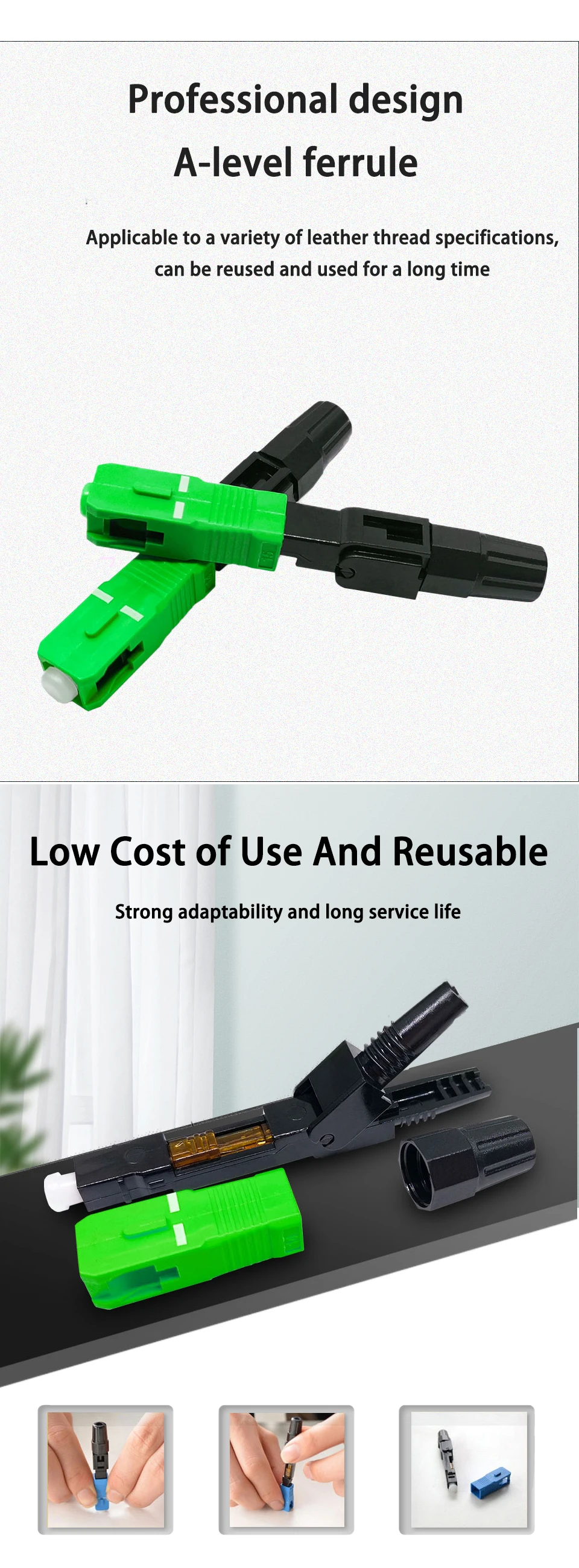 Comprar Conector rápido de fibra óptica SC APC, adaptador de modo único FTTH, montaje de campo, 50-400 piezas