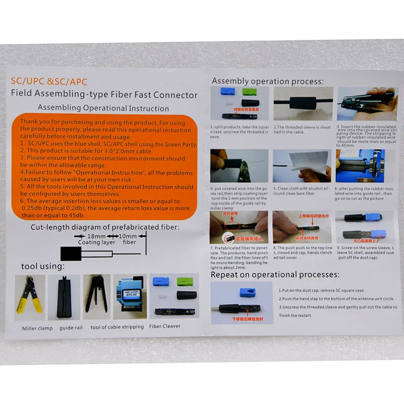 200 2017 Nuevo conector rápido de fibra óptica de Venta caliente SC/APC FTTH conector rápido frío de fibra óptica monomodo especial al por mayor