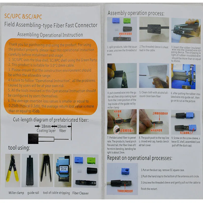 100 2017 Nuevo conector rápido de fibra óptica monomodo SC/PC/APC conector rápido de fibra óptica montable en campo con herramienta fría al por mayor