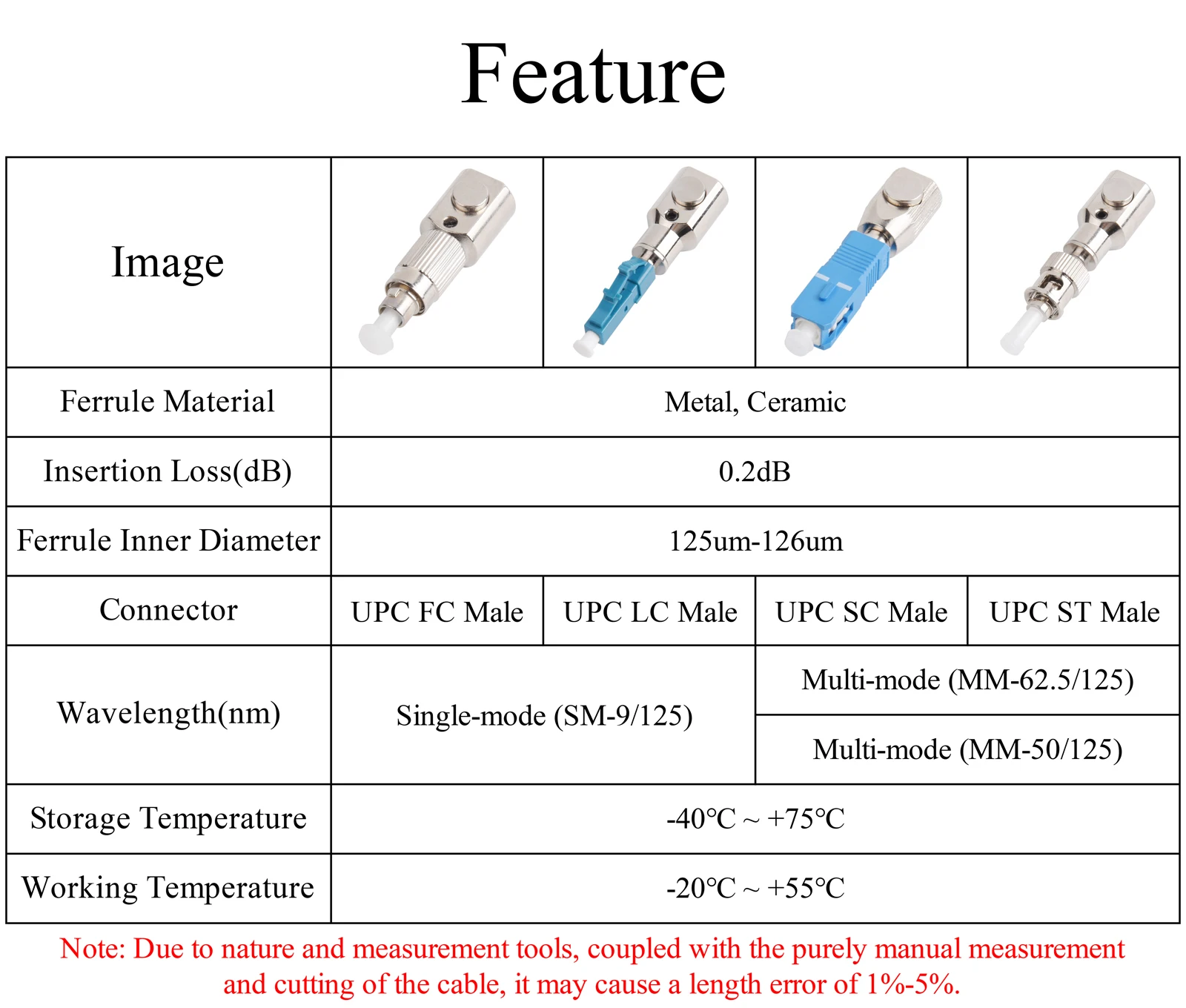 Nota: Debido a la naturaleza y las herramientas de medición, junto con la medición y corte puramente manual del cable, puede causar un error de longitud del 1% al 5%.