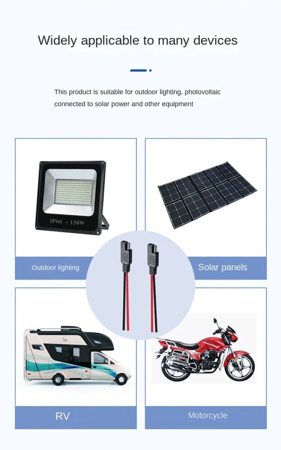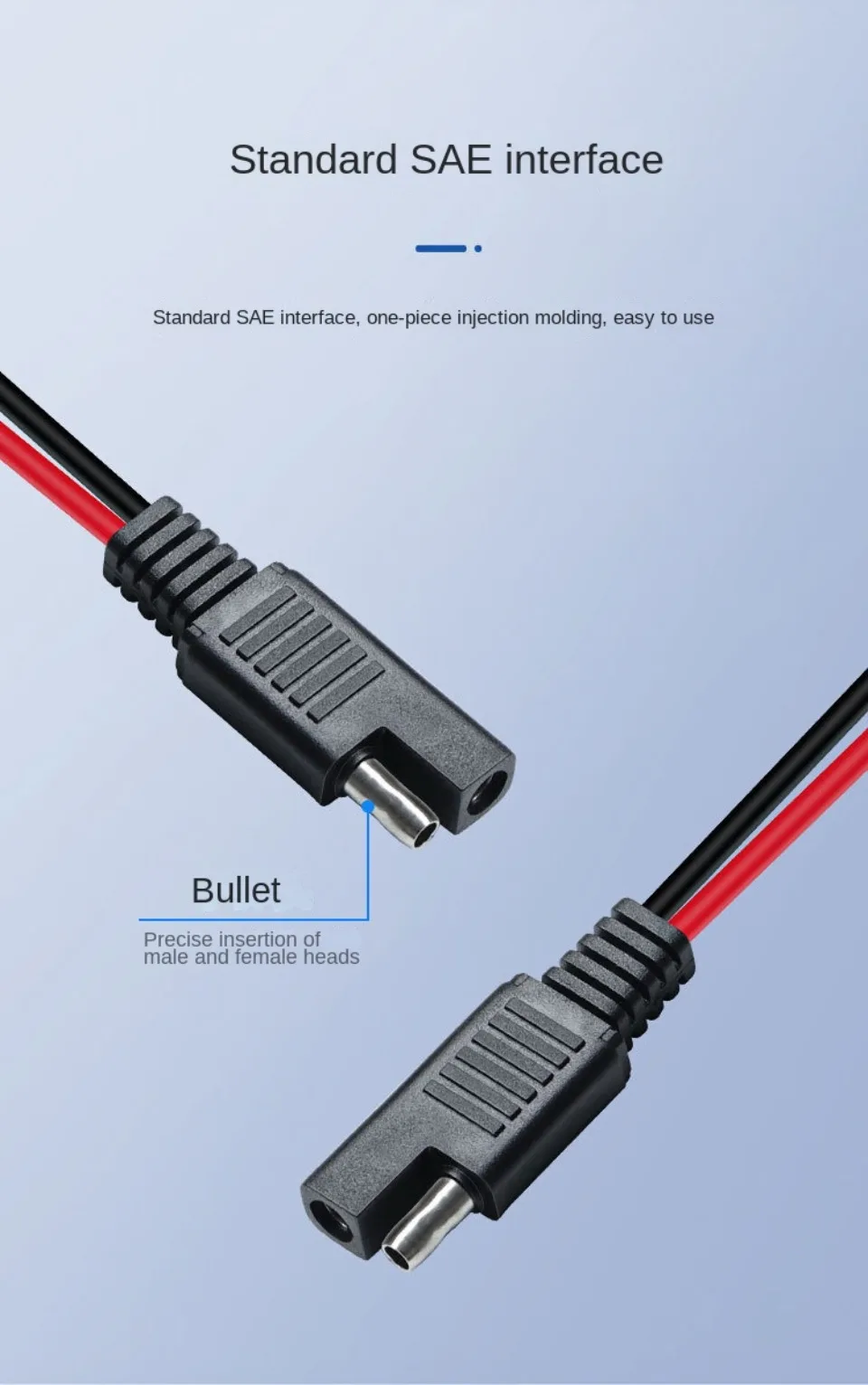 Comprar Conector rápido SAE de 15CM, 2 pines, enchufe de desconexión, 18AWG, arnés de Cable de extensión SAE para Panel Solar de generador de motocicleta