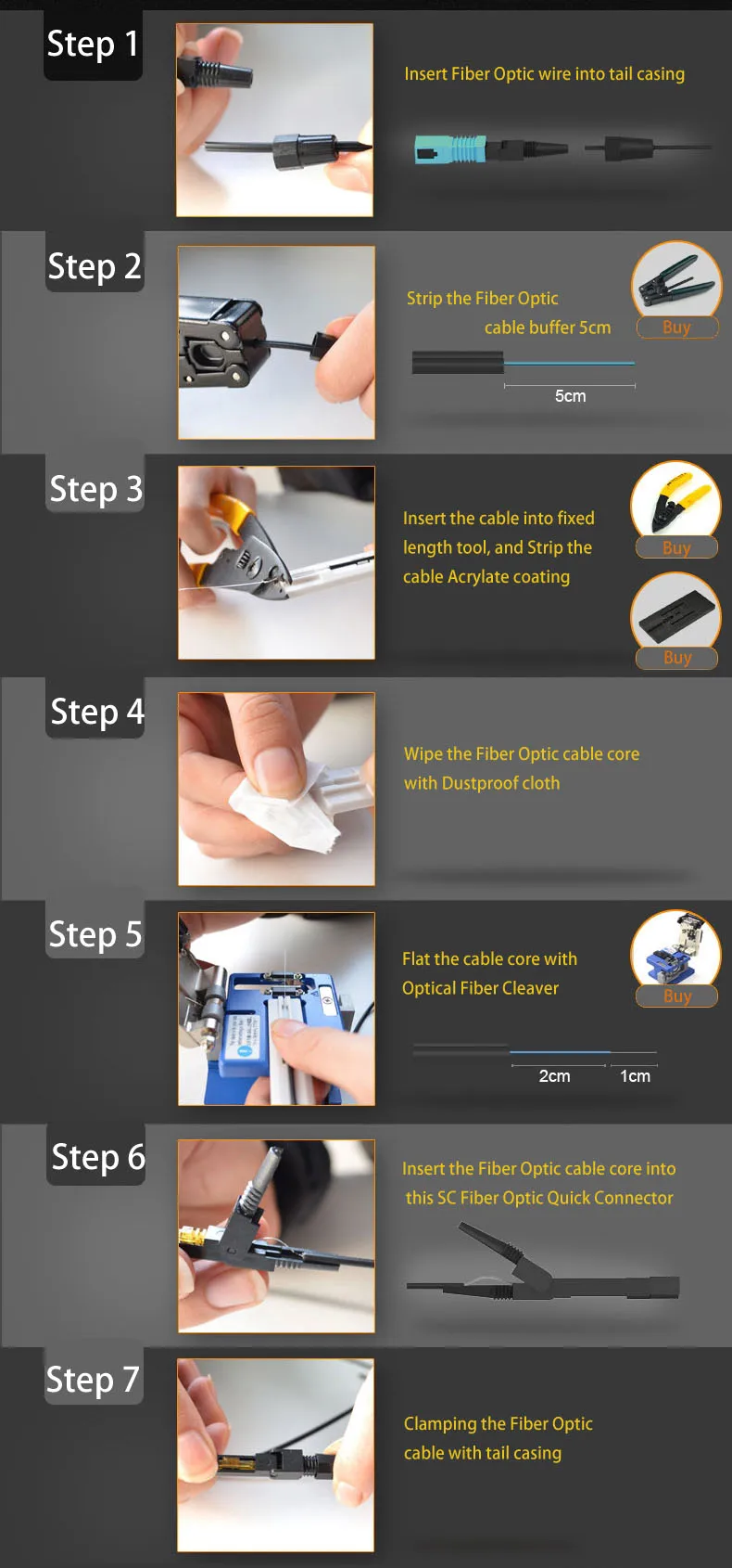 Comprar Conector rápido SCUPC 100 piezas, adaptador SC FTTH plano, montaje rápido de campo, Conector de cable de fibra