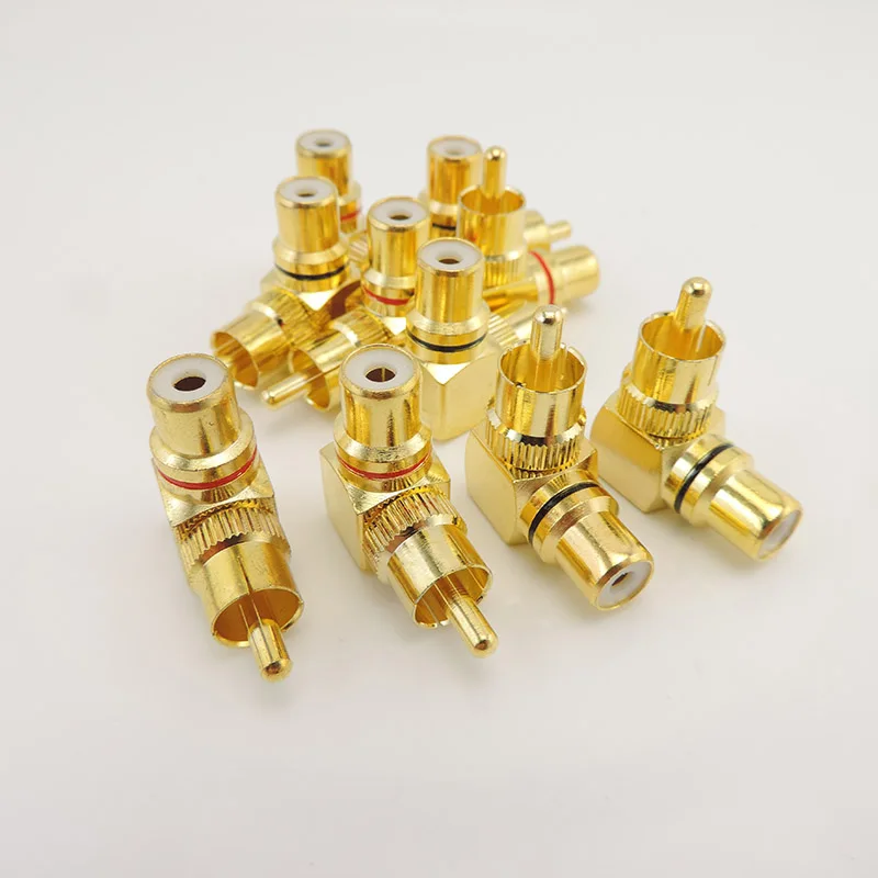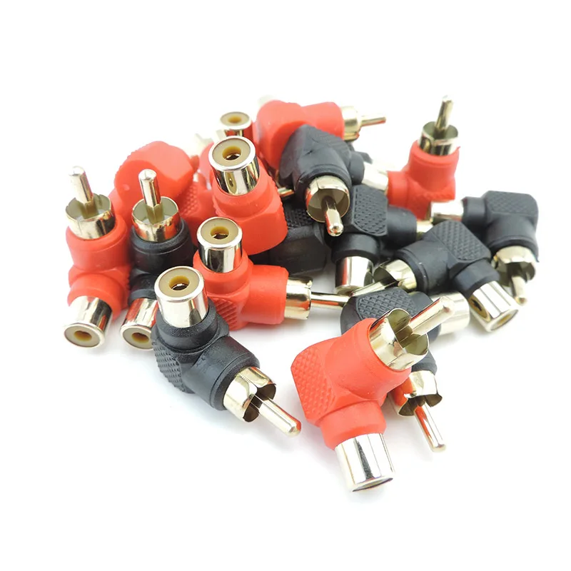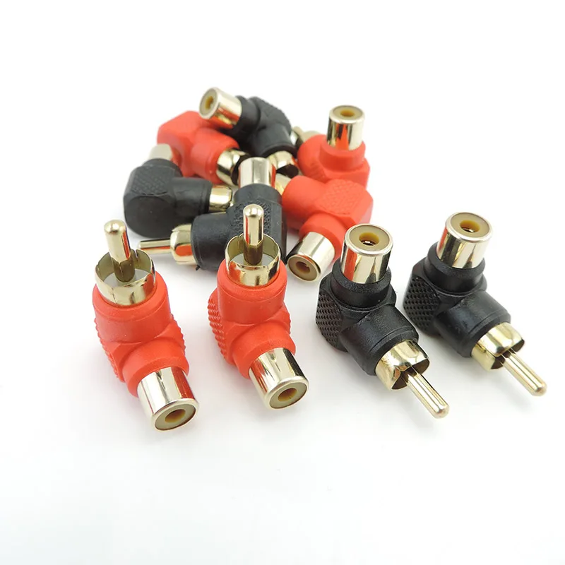 Conector RCA de 90 grados macho a hembra M/F adaptadores de enchufe de ángulo recto codo tipo L para cámara CCTV Audio