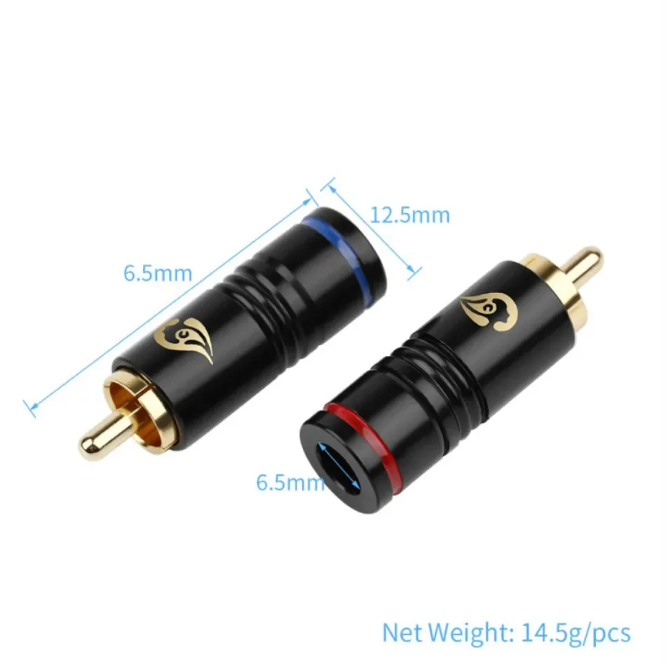 Comprar Conector RCA para altavoz, conector de Audio Hifi de 6,5mm, fibra de carbono acústica, cobre chapado en oro de 24K, adaptador de enchufe de loto macho RCA DIY