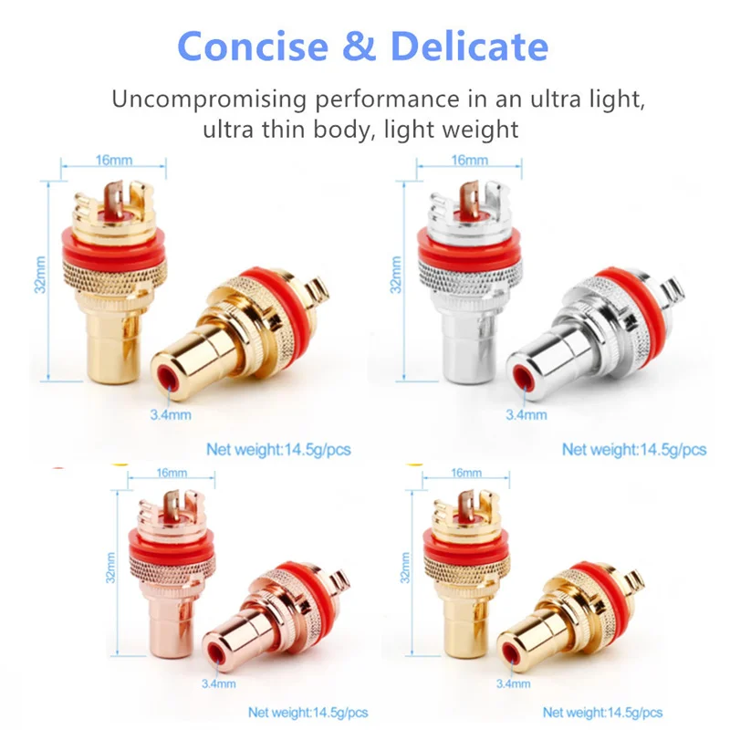 Comprar Conector RCA hembra, montaje en Panel de chasis, conectores de Terminal de altavoz, conector chapado en rodio silencioso brillante, enchufe de Audio HiFi