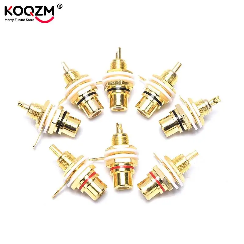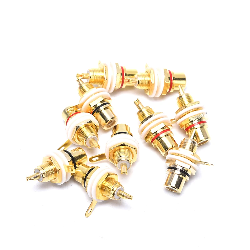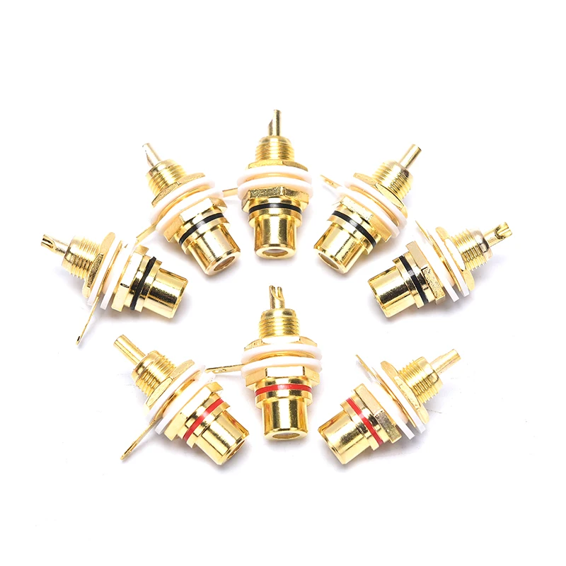 Comprar Conector RCA de montaje en Panel chapado en oro, enchufe hembra, amplificador de Audio, chasis, Phono con tuerca, taza de soldadura, 10 unidades por lote