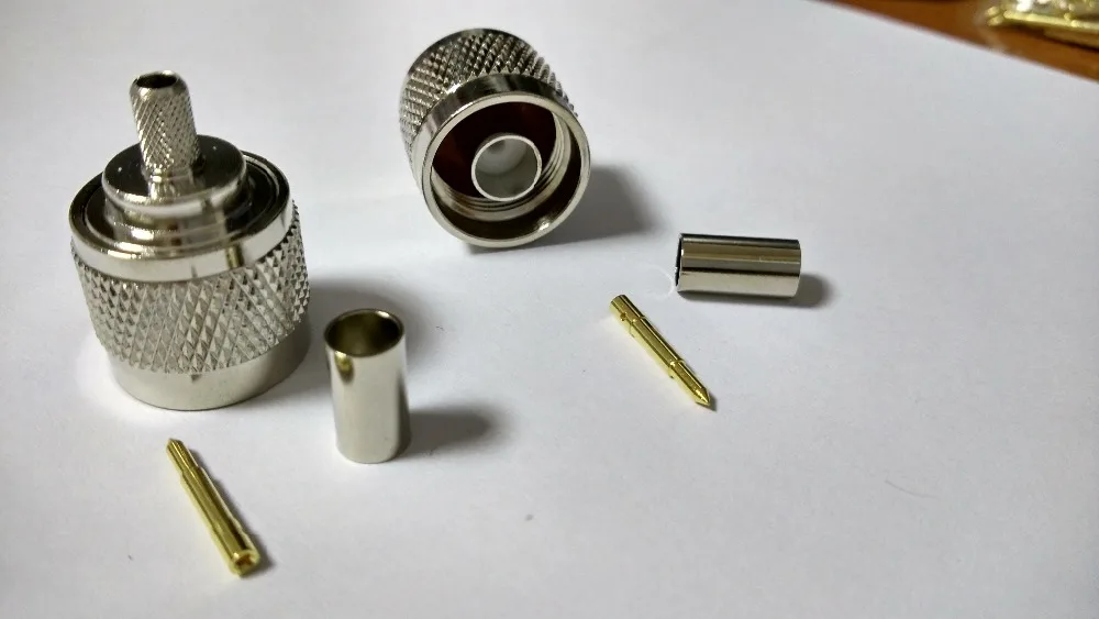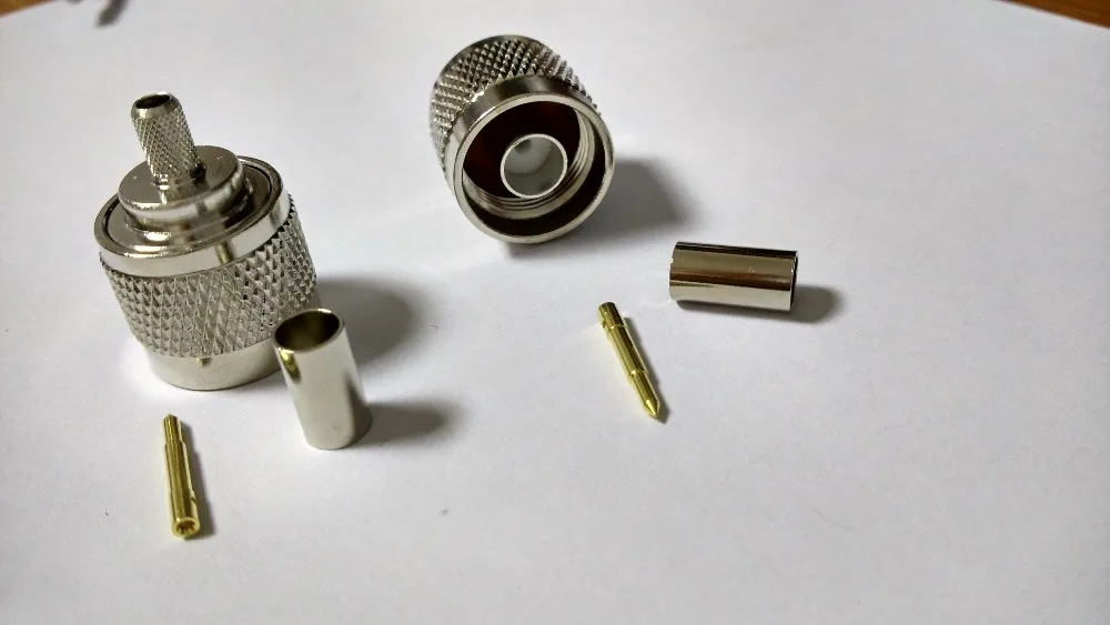 Comprar Conector recto de engarce macho N de latón para LMR195 RG58 142 tyco, adaptador nuevo, 50 Uds.