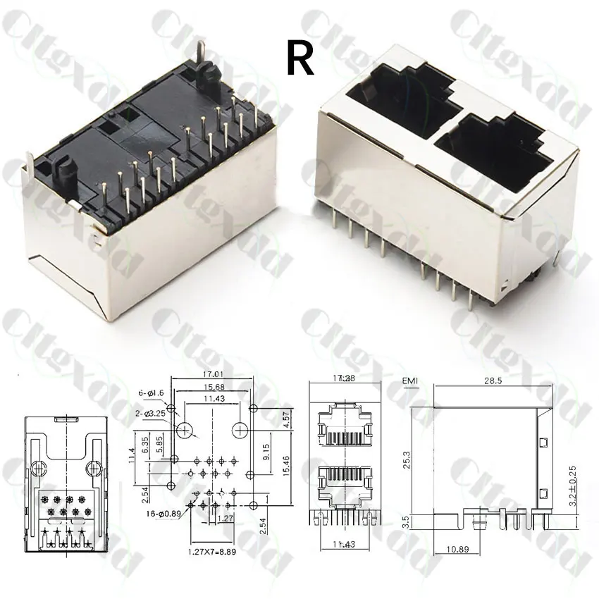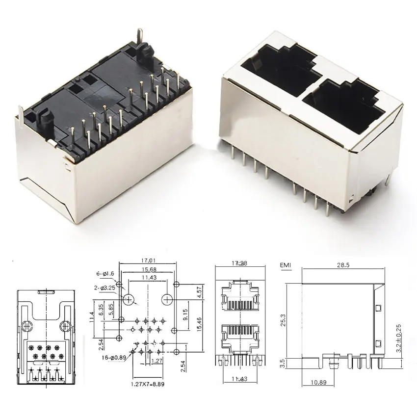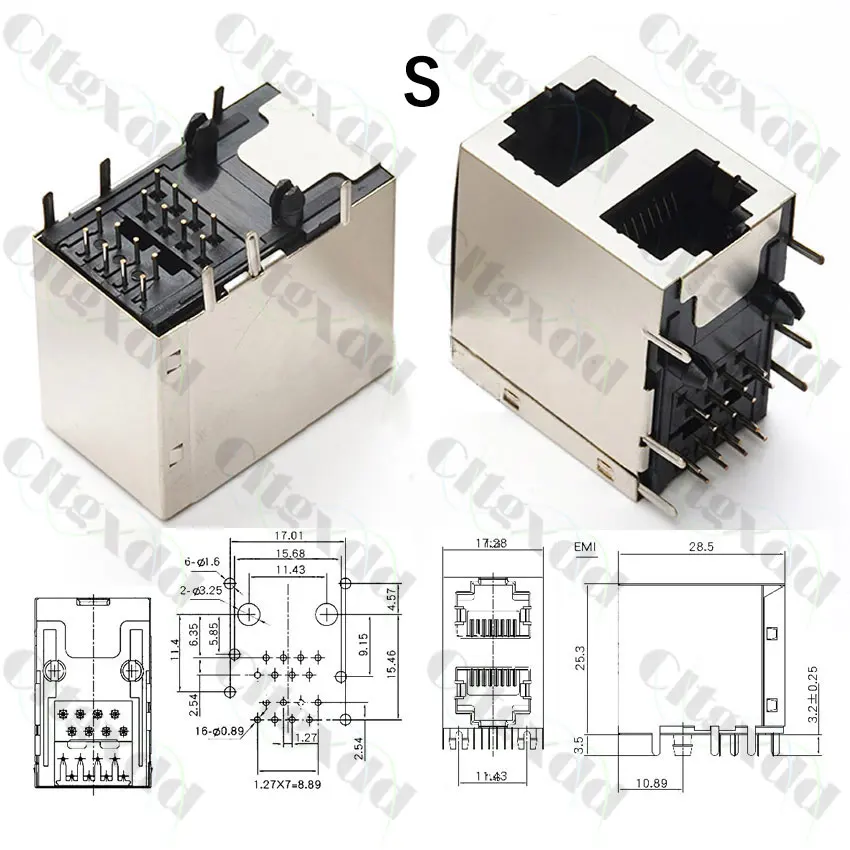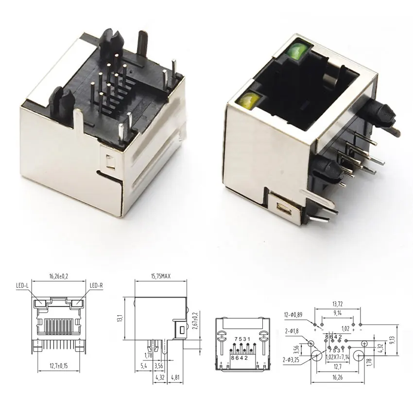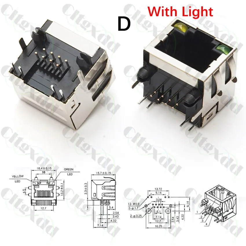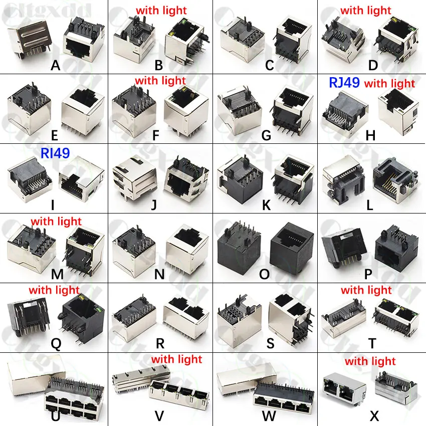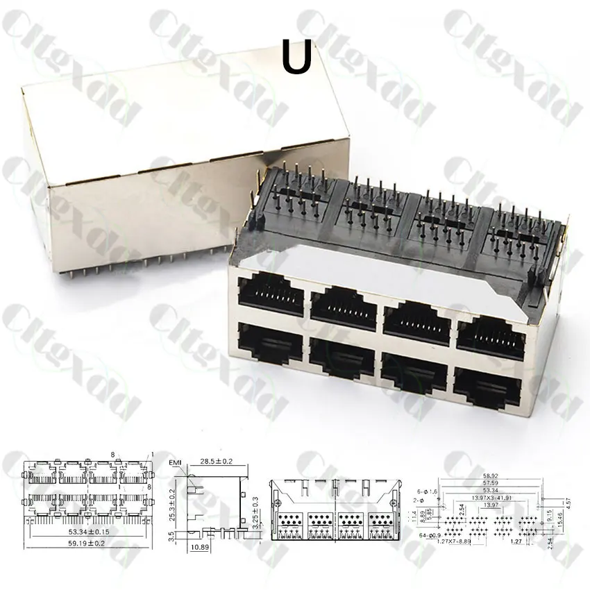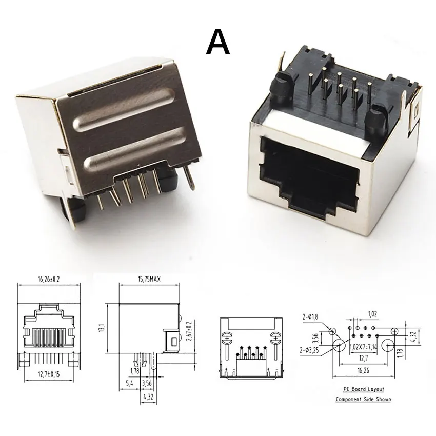 Comprar Conector de red de escudo RJ45 RJ49 de Metal de plástico, 8 pines, PCB SMT/placa horizontal/vertical, hembra, 8P8C, 10P8C, 1 unidad