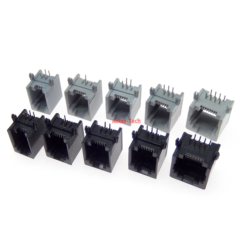 Comprar Conector de red Modular PCB, 10 piezas, RJ11, 4P4C, 6P6, 6P4C, 6P2C, 8P8C, puertos verticales, conectores hembra, negro, gris, cristal
