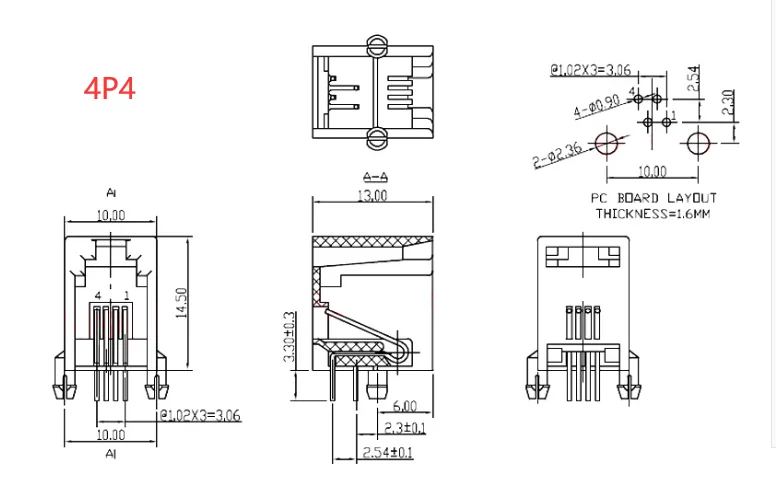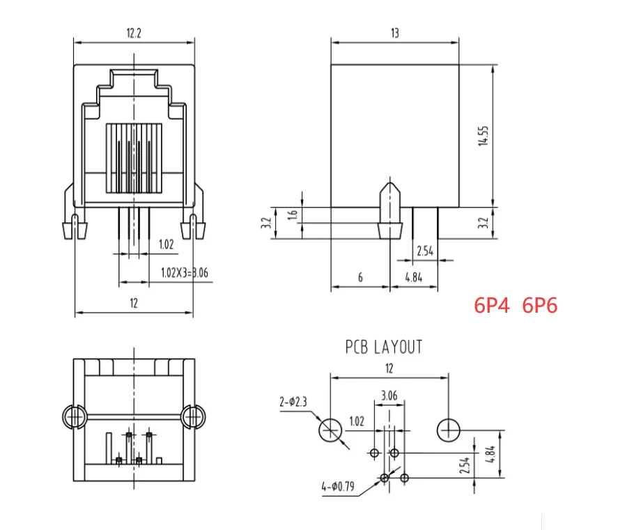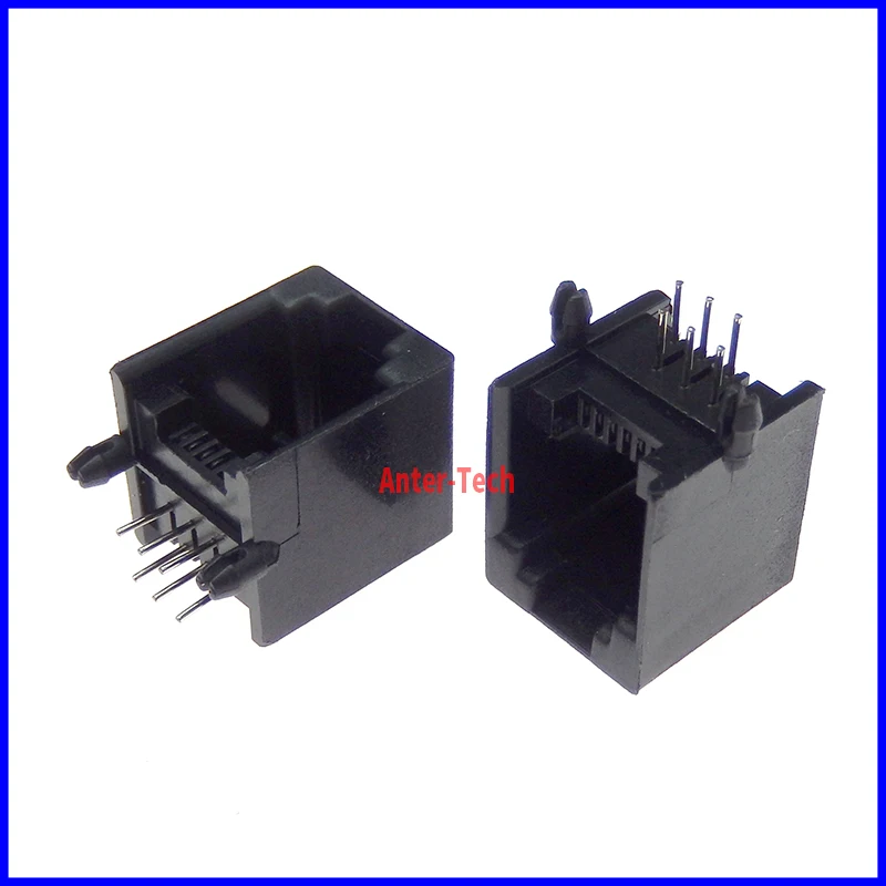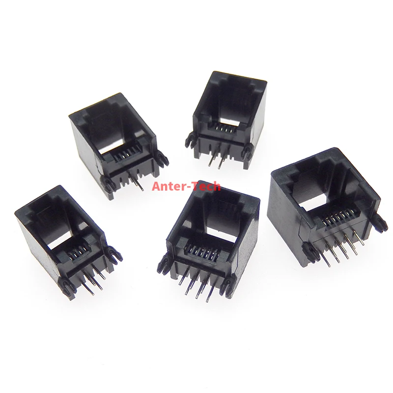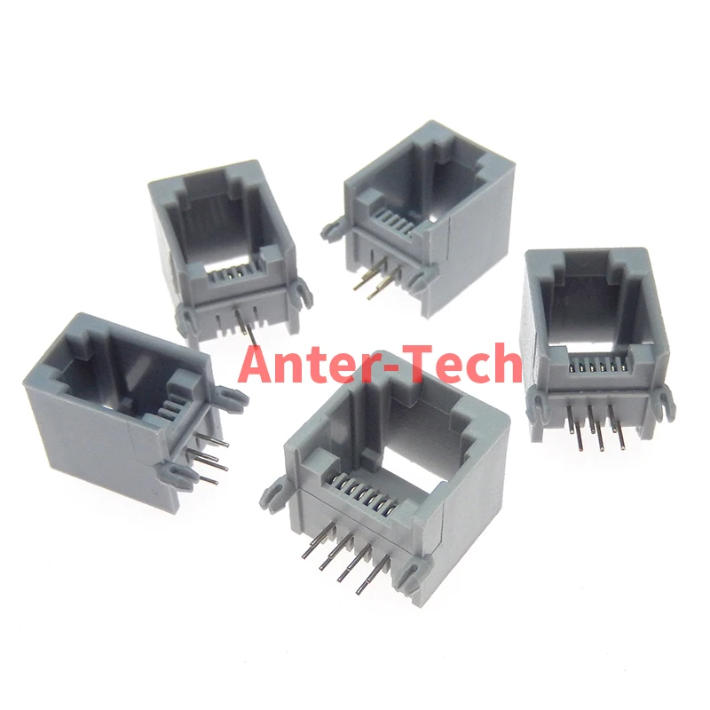 Conector PCB de red modular RJ11, 4P4C, 6P6, 6P4C, 8P8C, puertos verticales, conectores hembra, cristal gris y negro, 10