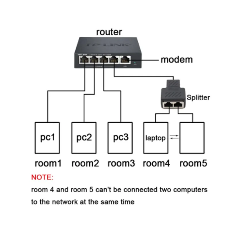 Conector de red de 1 a 2 vías, Cable de red, distribuidor femenino, red Ethernet, divisor RJ45, adaptador de enchufe C para ordenador portátil