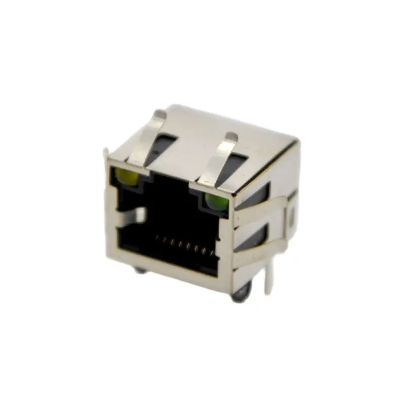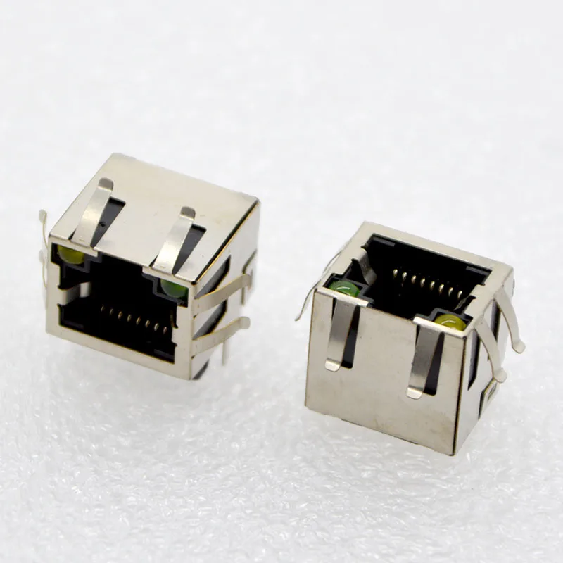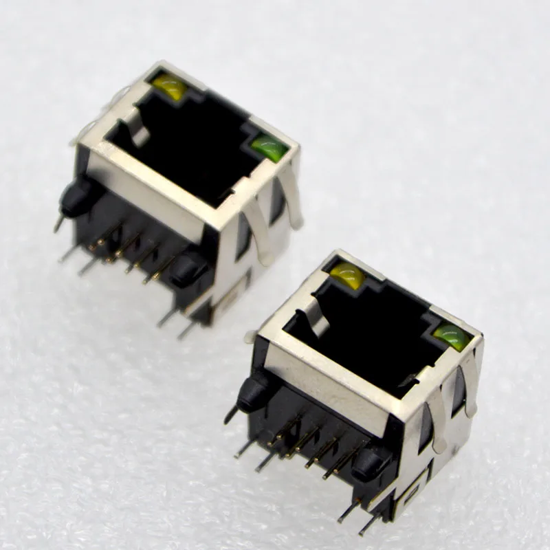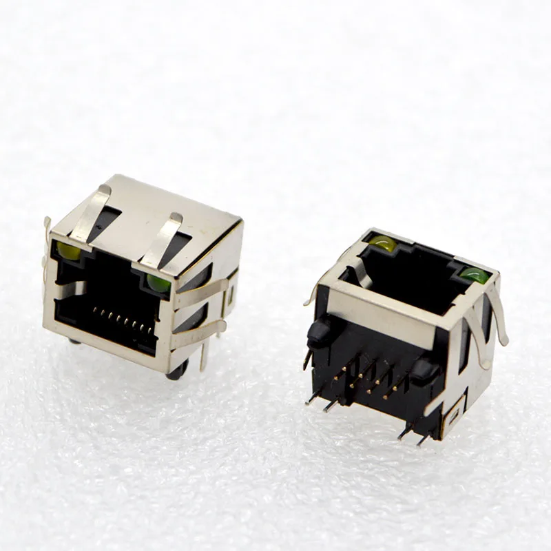 Toma de red RJ45 90 grados horizontal 8P8C con pantalla de lámpara/carcasa de cobre con metralla