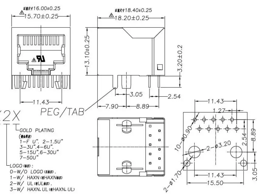 Comprar Conector de red RJ48 10P10C, 100 piezas, con enchufe de blindaje, carcasa de cobre de 10 núcleos, conector hembra, PCB, uso especial, venta al por mayor