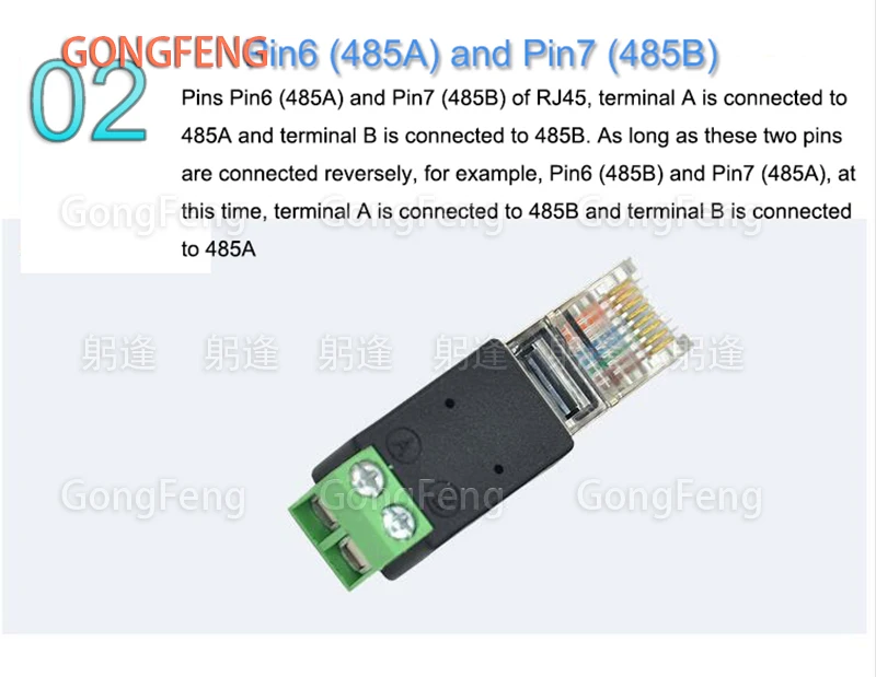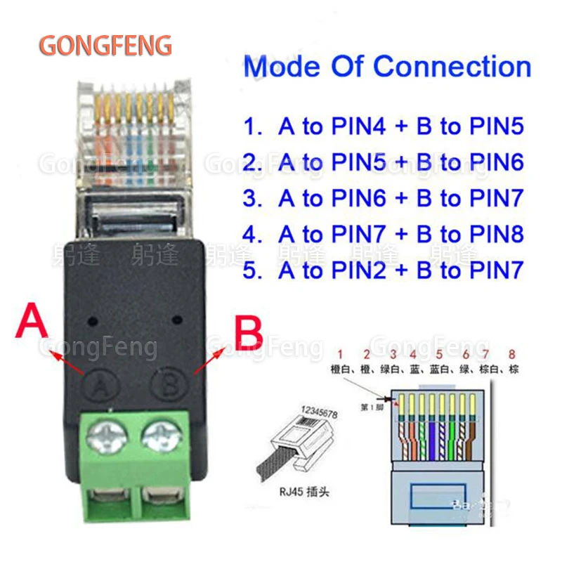 Nombre del producto: terminal RJ45 a 485, pin4 y pin5 o pin6 y pin7.