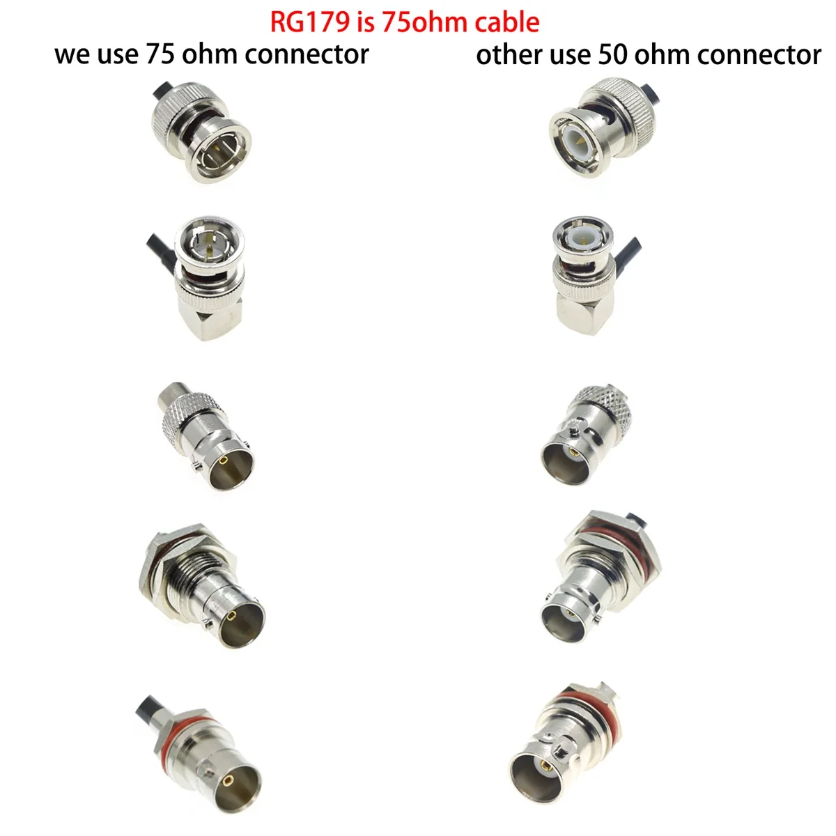 Comprar Conector RG179 F macho de ángulo recto a BNC macho Pug de 75ohm, HD-SDI de vídeo, puente RF, Cable Coaxial Pigtail de 30CM, 50CM, 1M, 2M, 3M