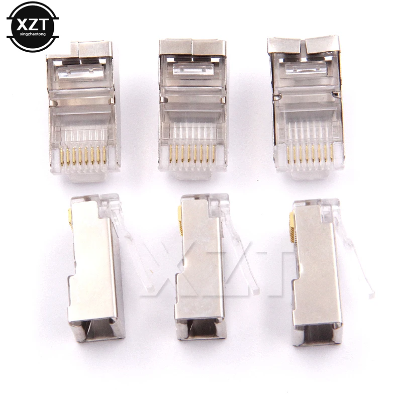 Conector rj45 de 50 piezas, conectores de red blindados Cat6, enchufe rj45, terminales 8p8c para módem de conmutadores de Cable Ethernet Stp