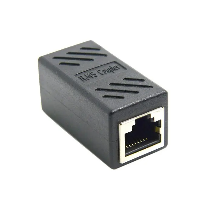 Adaptador de extensión de cable de red Ethernet con conector Lan hembra a hembra RJ45Con escudoColor negroSe utiliza para conectar dos cables RJ45 juntos.Haga que dos cables RJ45 funcionen como un solo cableRecta a través de la configuración8 conductores con contactos chapados en oroVelocidad de transmisión: 100MbpsEl embalaje incluye:1 Uds x adaptador RJ45 hembra a hembra