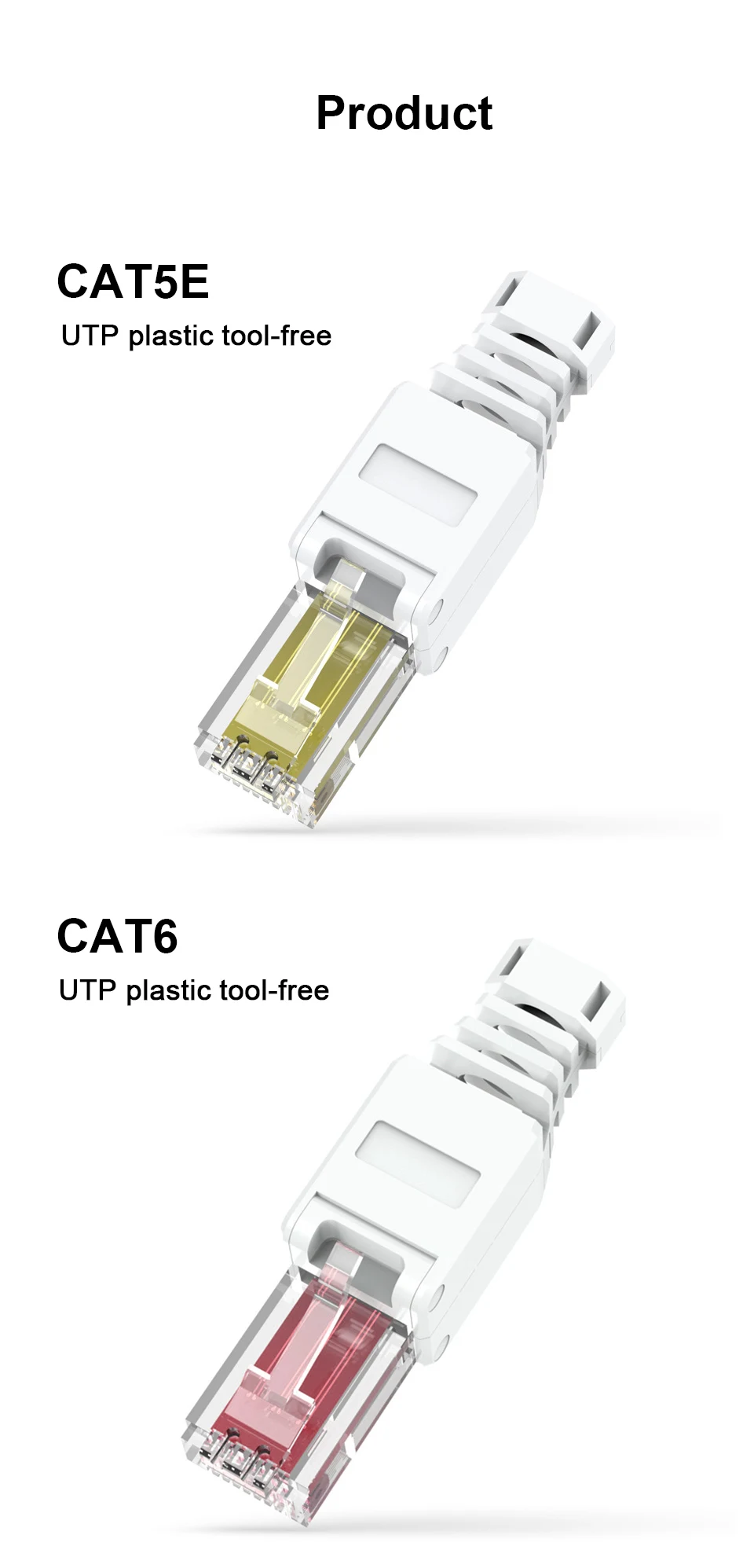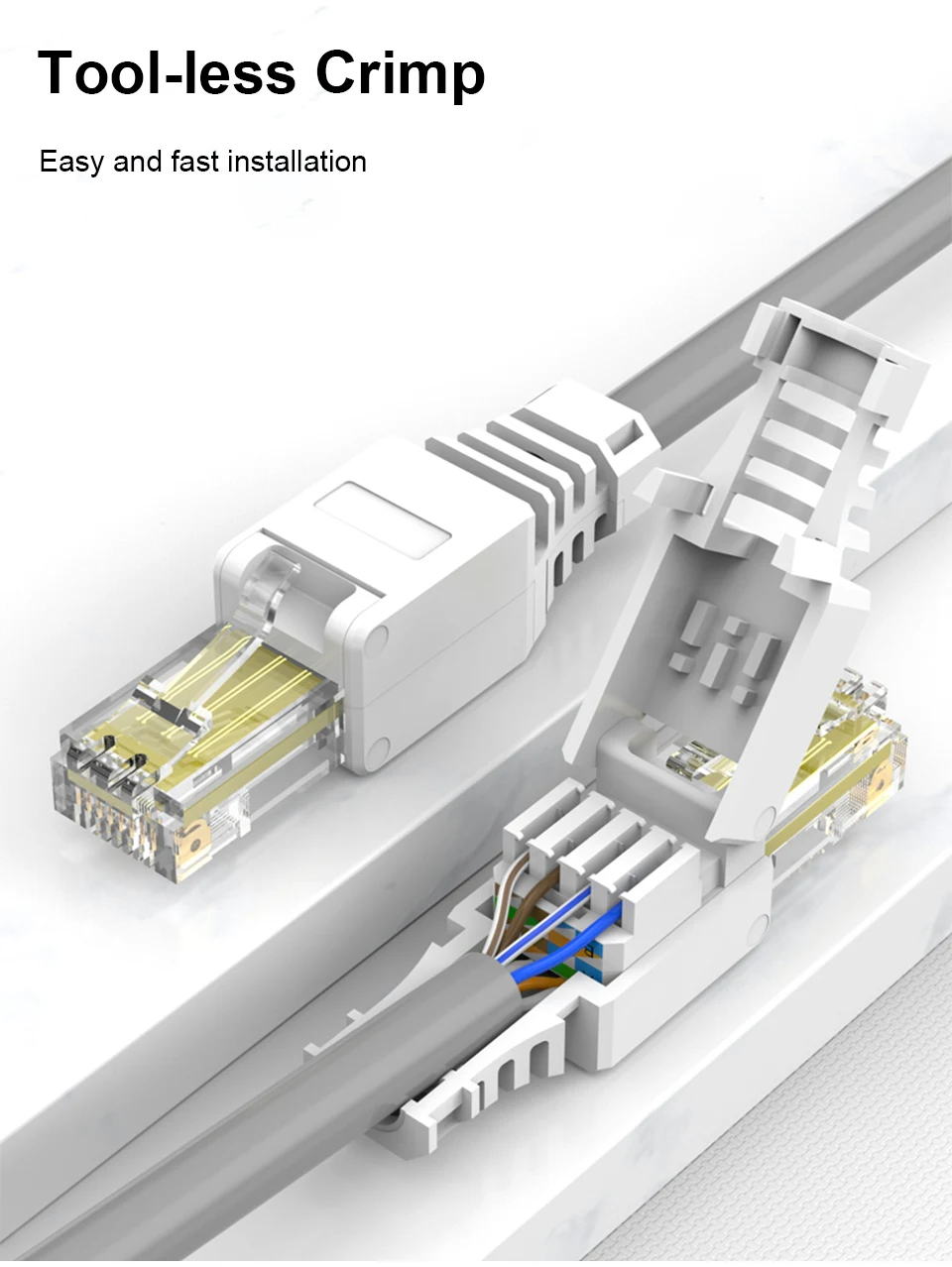 Comprar Conector RJ45 sin herramientas CAT6 CAT5E, sin herramienta de engarzado, menos enchufe Modular UTP de 1000Mbps para cable Ethernet Lan sólido trenzado