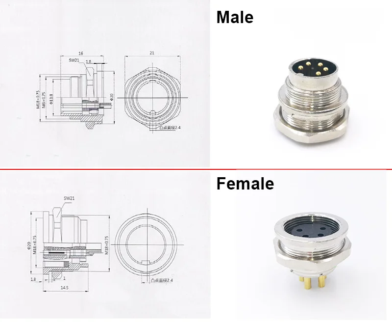 Comprar Conector de Sensor M16, Conector de brida macho y hembra, montaje en panel trasero 2, 3, 4, 5, 6, 7, 8 pines