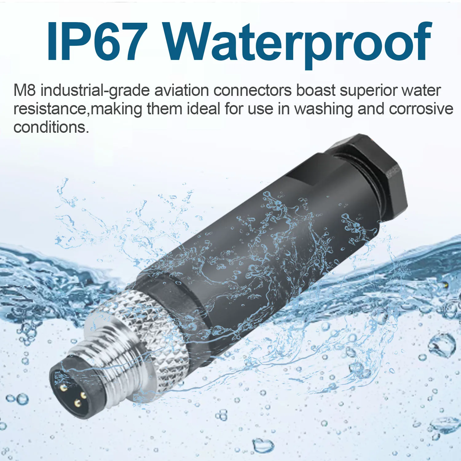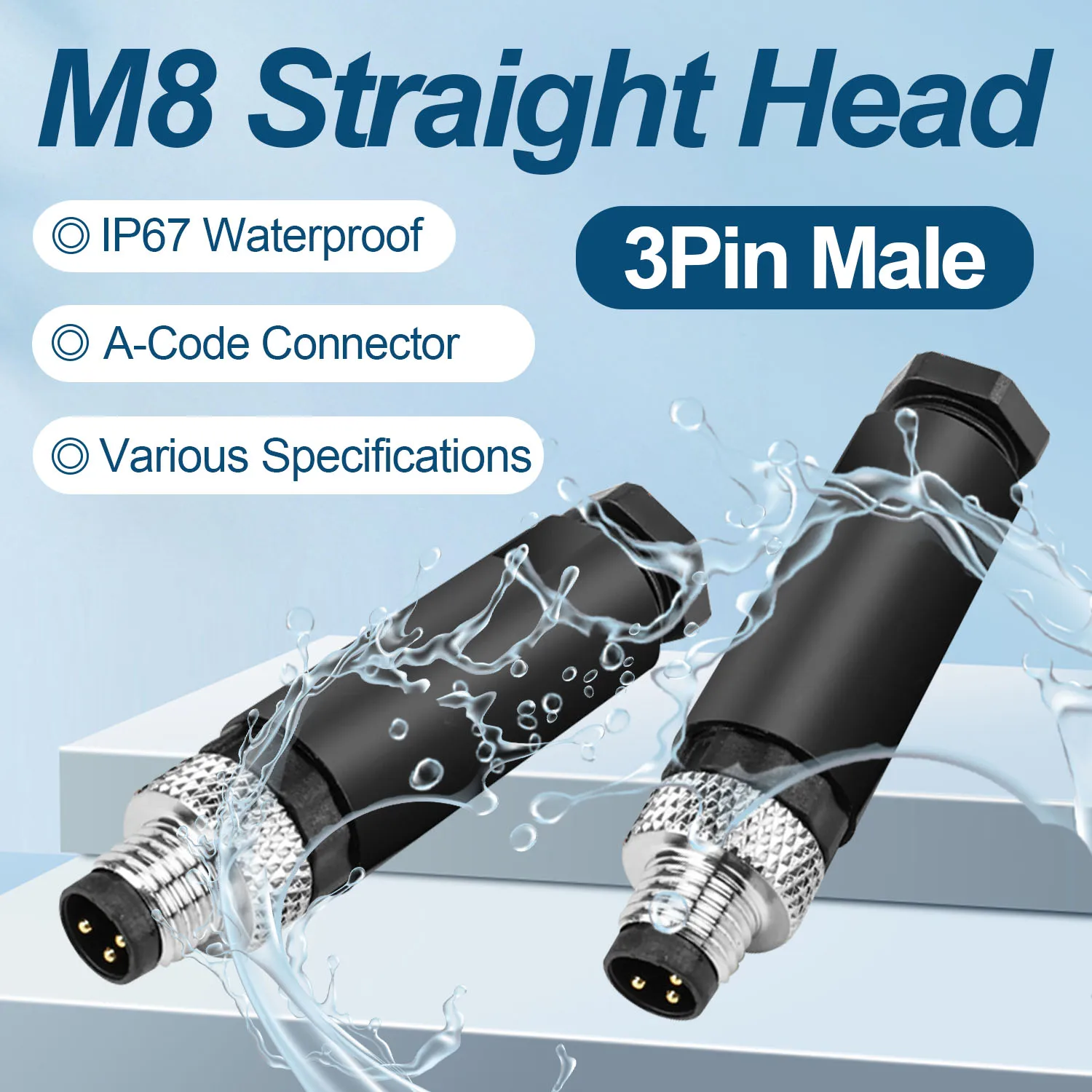 Conector de Sensor M8 de 3 pines, conector macho de aviación impermeable IP67, 8MM A, enchufe de montaje de campo de codificación, Sensor de Panel de enchufe Circular