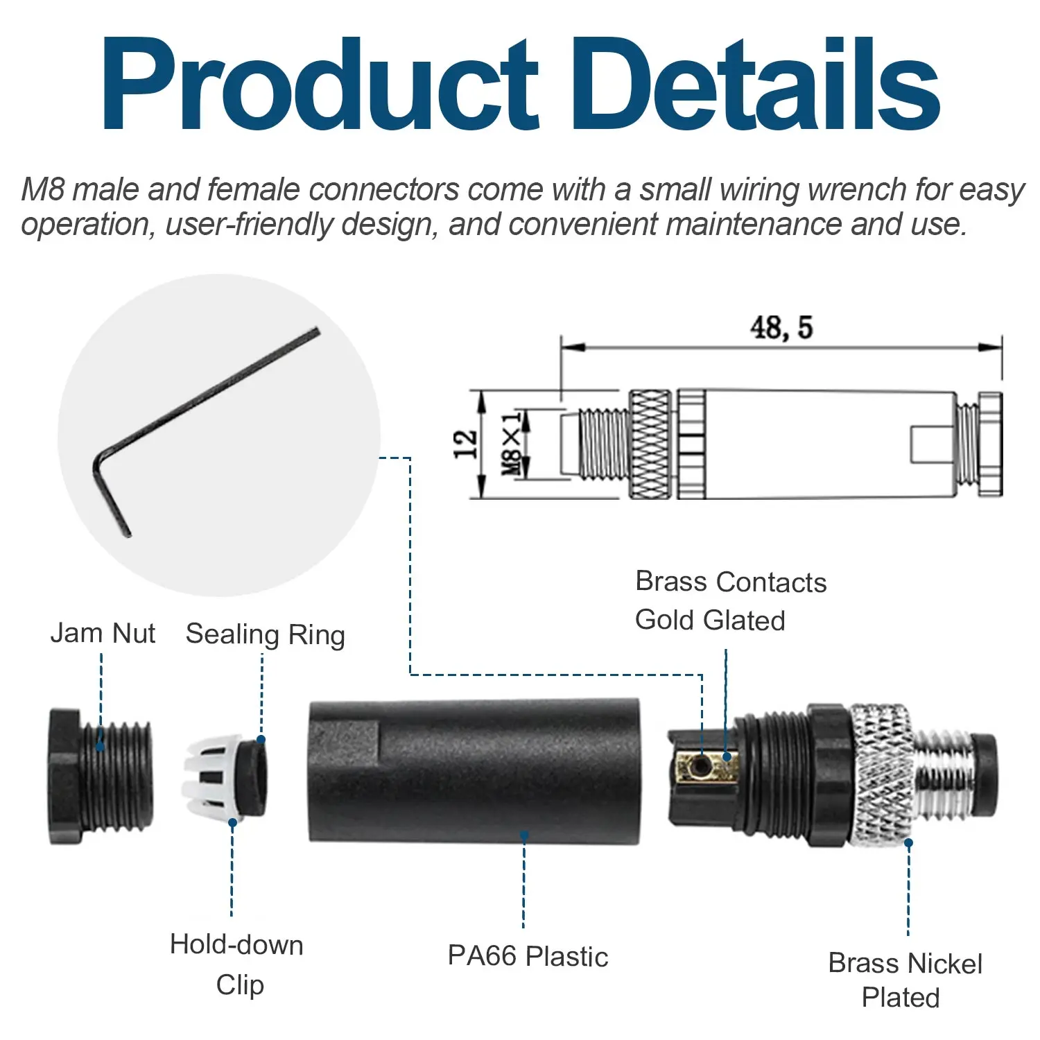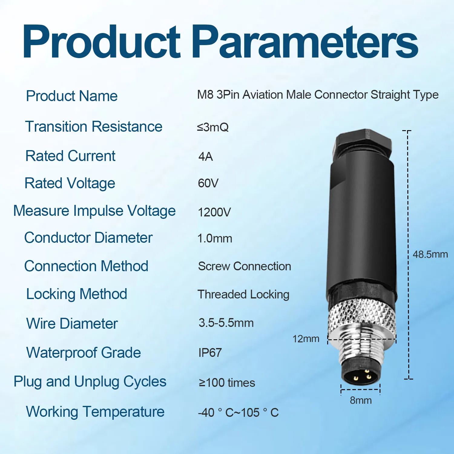 Comprar Conector de Sensor M8 de 3 pines, conector macho de aviación impermeable IP67, 8MM A, enchufe de montaje de campo de codificación, Sensor de Panel de enchufe Circular