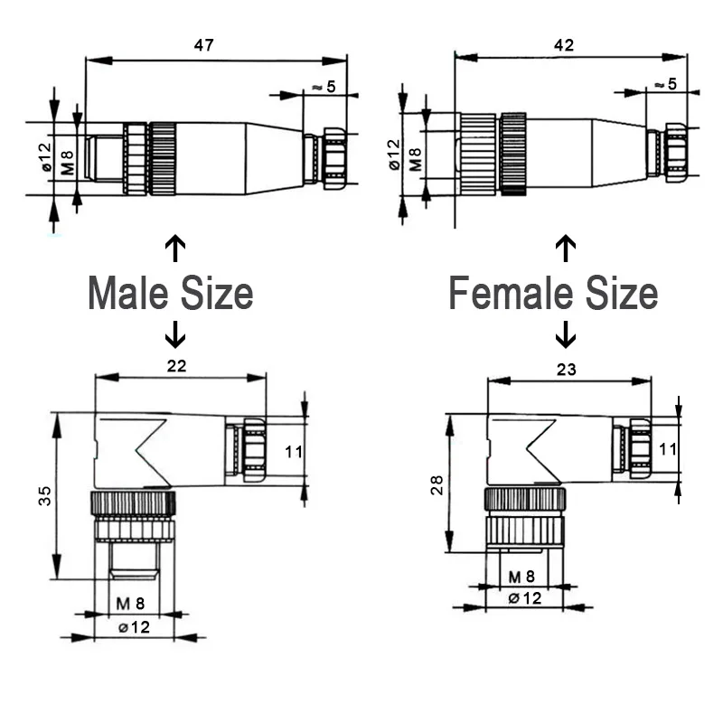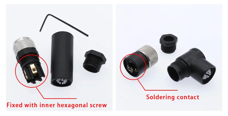 El contacto del conector del sensor de ángulo M8 tiene dos opciones: 1. fijado con tornillo hexagonal interior. 2. Necesita ser soldado.