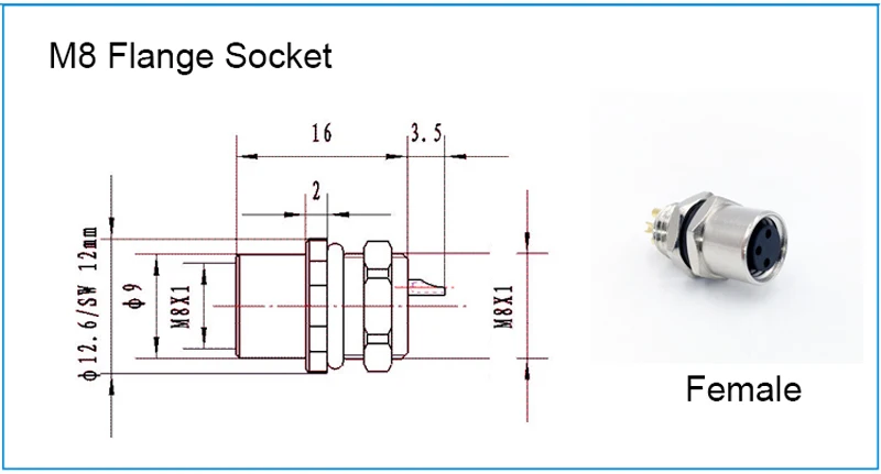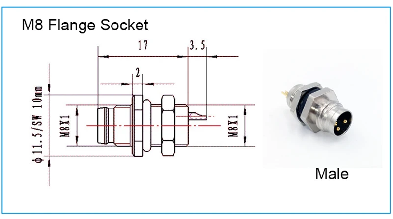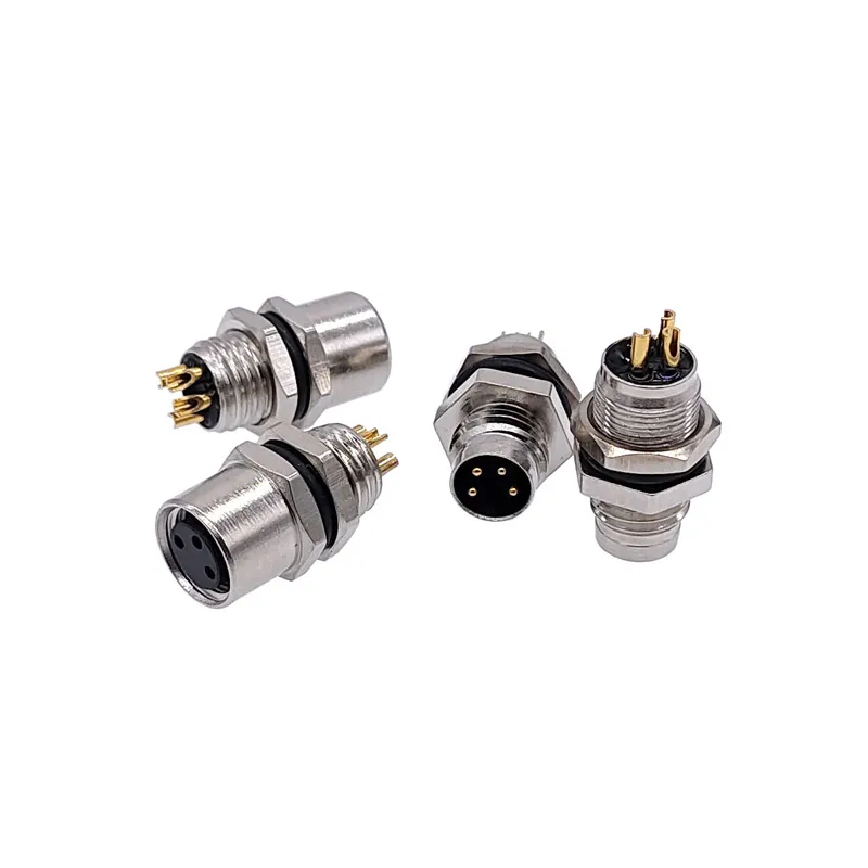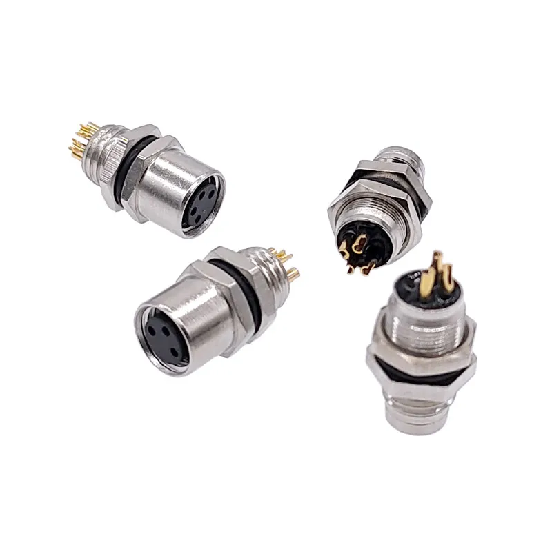 Comprar Conector de Sensor de montaje trasero de panel M8, enchufe de brida, acoplamiento roscado macho y hembra tipo A 3, 4 pines, 1 ud.