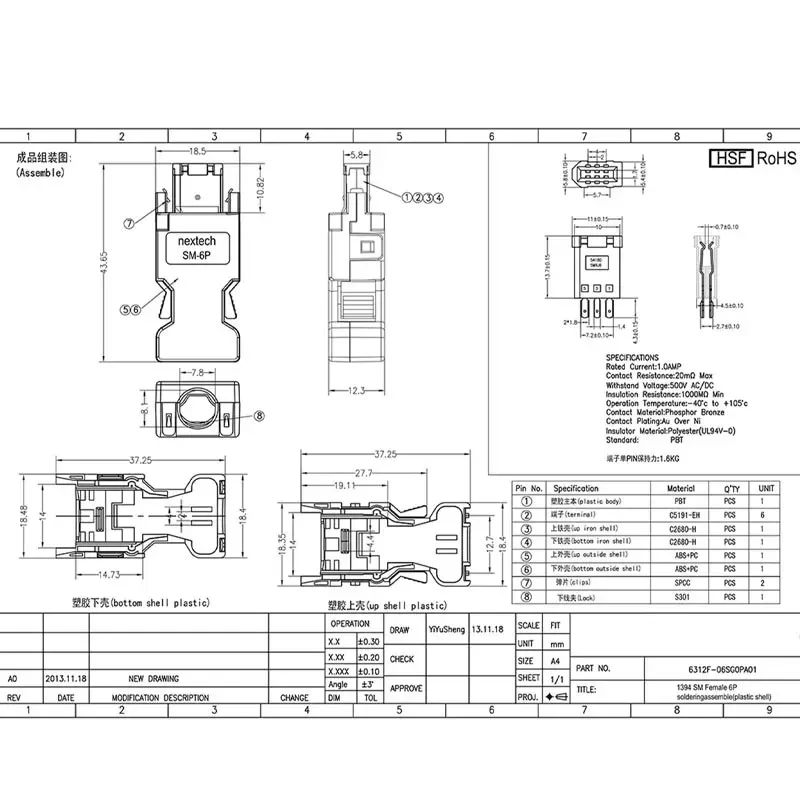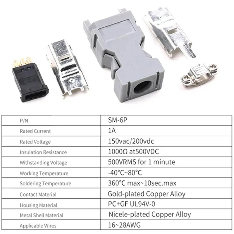 Comprar Conector de SM-6P de enchufe codificador 1394, Compatible con Yaskawa, Panasonic Delta, servocontrolador, conectores enchufables para cable de 16-28AWG, 1 ud.