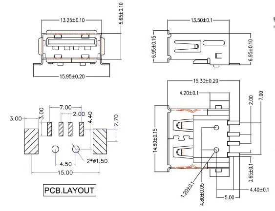 Conector de soldadura hembra tipo A, Conector de 2 A 10 piezas, puerto estándar USB, 4 pines, PCB, tipo de USB-A, SMT, 4 pines